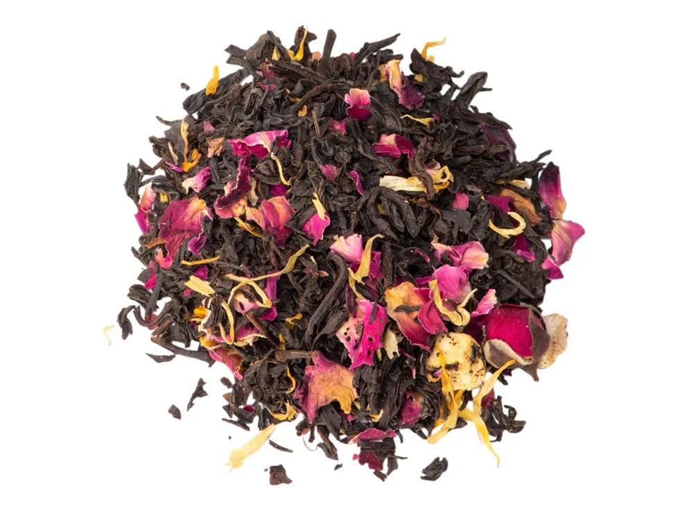 Чай черный «Манго-Маракуйя», серия «Bouquet» Для тех, кто хочет добавить в чаепитие новых красок, придумана серия «Bouquet». Каждый купаж чая в серии имеет разнообразные и неожиданные добавки фруктов, ягод или трав. Тропический купаж чая с цветами роз - такой подарок точно запомнится надолго! Кусочки манго придают напитку фруктовые ноты, а лепестки и бутоны розы - душистый и романтический аромат цветов. - вес чая: 50 гр.; - состав: купаж на основе крупнолистового черного индийского чая, кусочки манго сублимированные, бутоны роз, лепестки роз, лепестки календулы, натуральный ароматизатор; - стеклянная банка сохраняет все ароматы чая.