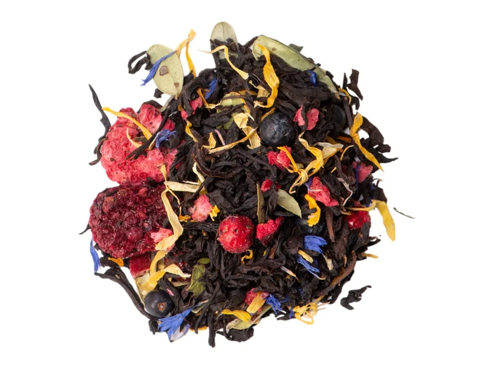 Чай черный «Манго-Маракуйя», серия «Bouquet» Для тех, кто хочет добавить в чаепитие новых красок, придумана серия «Bouquet». Каждый купаж чая в серии имеет разнообразные и неожиданные добавки фруктов, ягод или трав. Тропический купаж чая с цветами роз - такой подарок точно запомнится надолго! Кусочки манго придают напитку фруктовые ноты, а лепестки и бутоны розы - душистый и романтический аромат цветов. - вес чая: 50 гр.; - состав: купаж на основе крупнолистового черного индийского чая, кусочки манго сублимированные, бутоны роз, лепестки роз, лепестки календулы, натуральный ароматизатор; - стеклянная банка сохраняет все ароматы чая.
