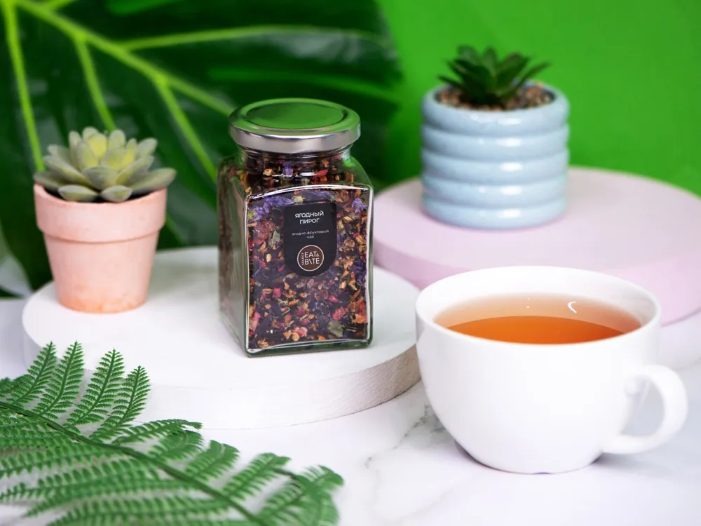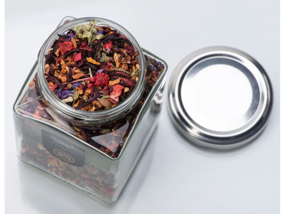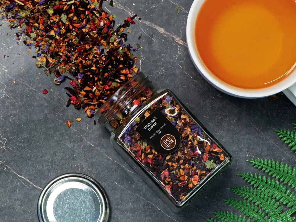 Чай ягодно-травяной, серия "Bouquet", ягодный пирог, стеклянная банка