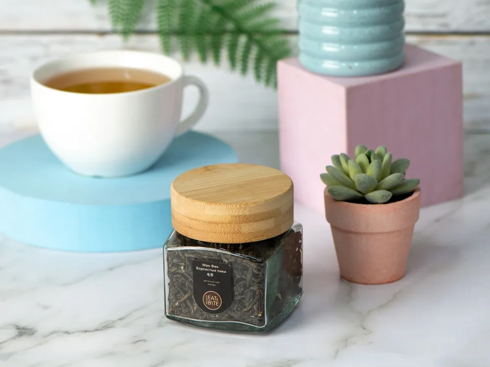 Чай зеленый, серия "Ceremony", Маофэн (ворсистые пики), стеклянная банка