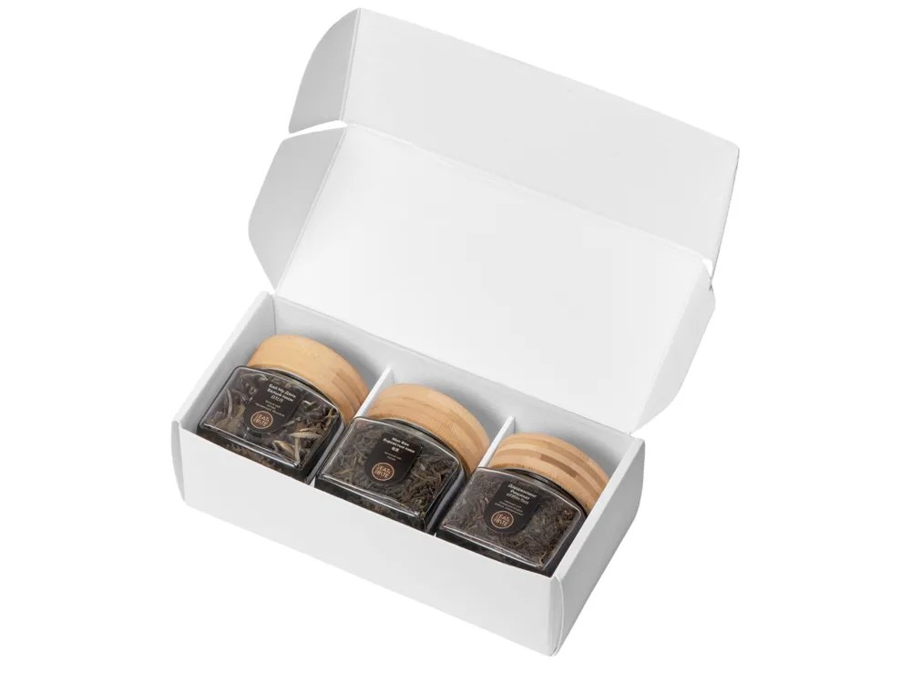 Набор подарочный «Ceremony» Натуральные чаи премиум качества собраны в серии «Ceremony». Отсутствие дополнительных компонентов поможет насладиться насыщенным и чистым вкусом чайных листьев разных сортов. В наборе представлены три вида чая: ● Зелёный «Мао Фен». Известный китайский чай из молодых листьев с особенным сладким вкусом, напоминающим дыню или абрикос; ● Красный «Дянь Хун». Уникальный чай для императоров Китая с терпким вкусом с оттенком мёда; ● Чёрный «Дарджилинг Ришихат». Индийский чай с предгорий Гималаев обладает приятным цветочным ароматом.