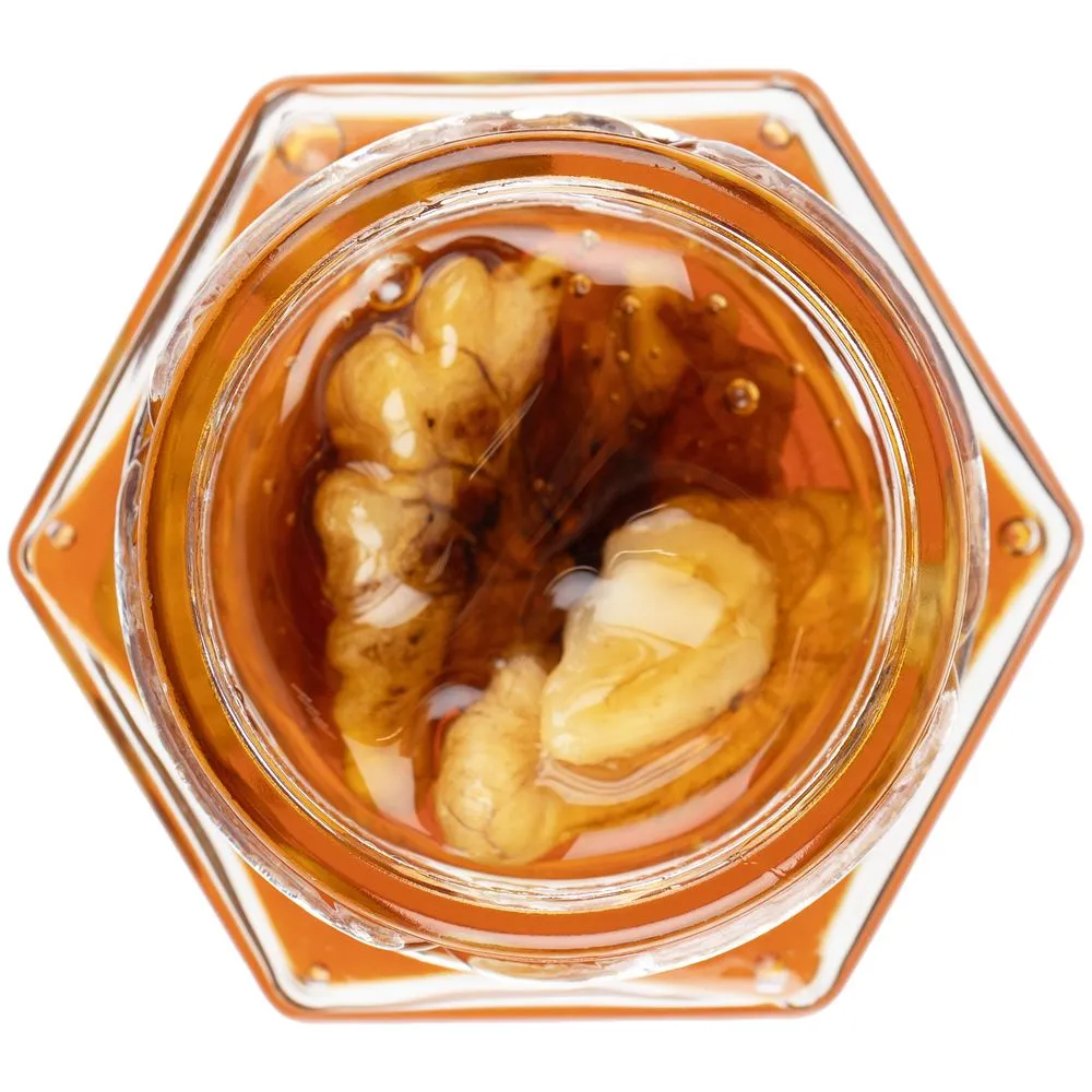 В мед Bee To Bear Mini, собранный с цветочного разнотравья, где встречается и гречиха, добавлены грецкие орехи. Этот полезный десерт не только повысит иммунитет, но и поможет при анемии, а также укрепит сердце и сосуды. Кроме того, сочетание таких ингредиентов улучшает работу мозга.