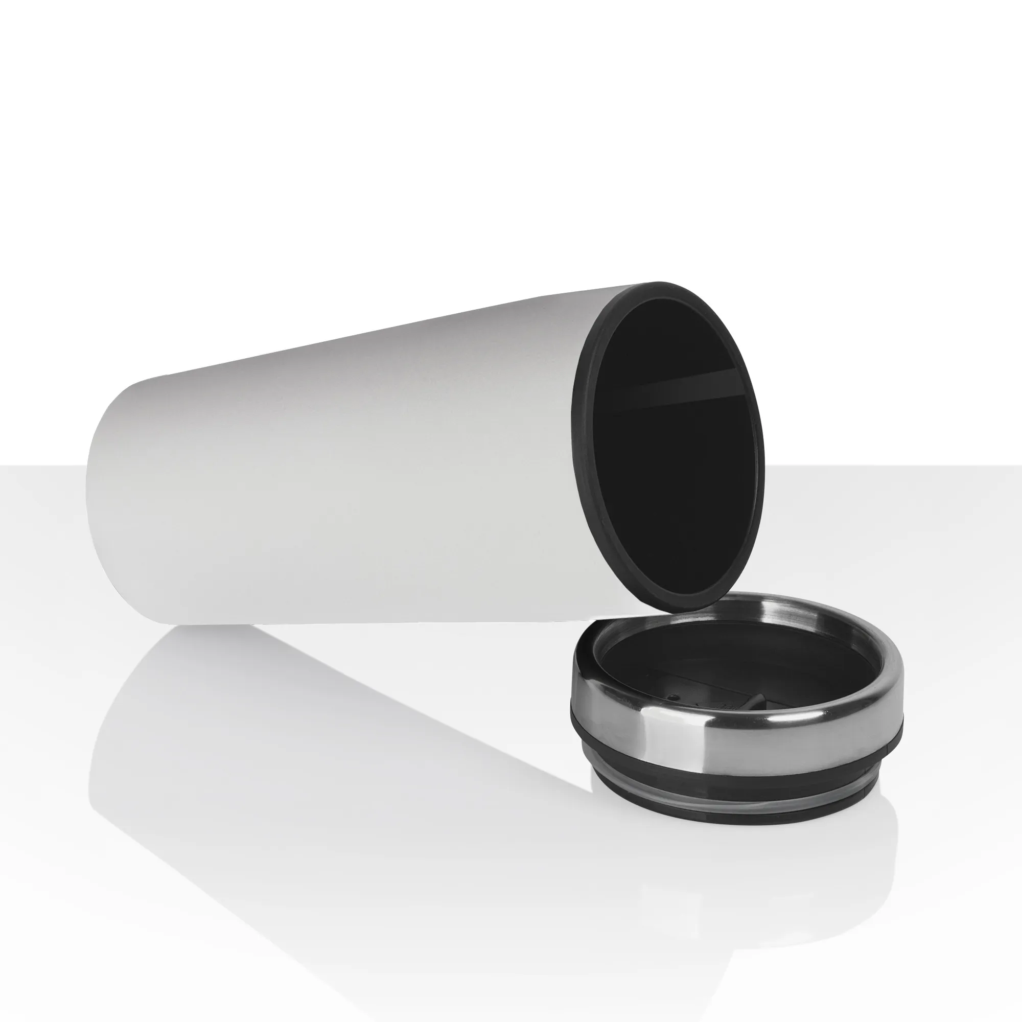 Белый - элегантный и практичный - новый цвет термостакана "Европа". Внешняя стенка термостакана изготовлена из нержавеющей стали с уникальным пудровым покрытием, а внутренняя стенка выполнена из высококачественного пластика.