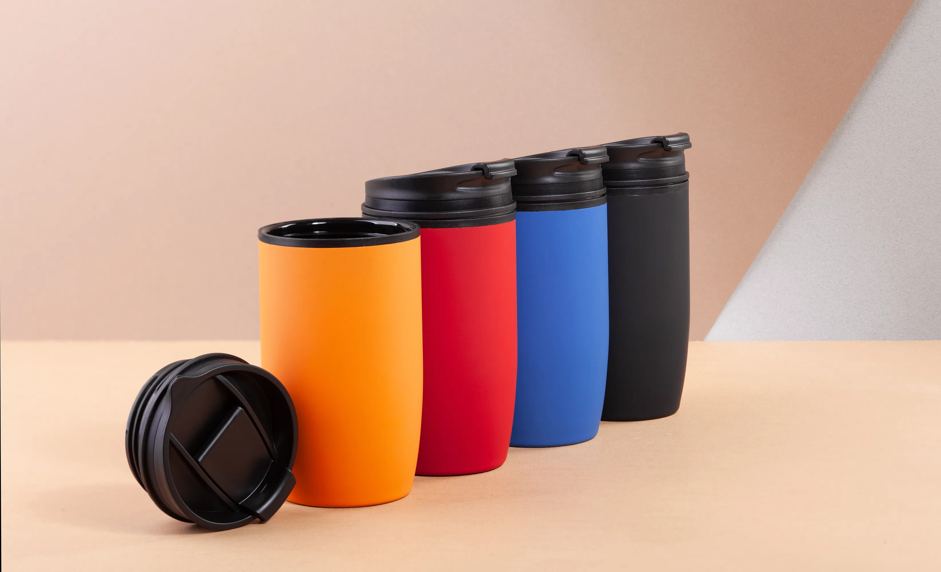 Внутри полипропилен, снаружи металл в покрытии soft touch.