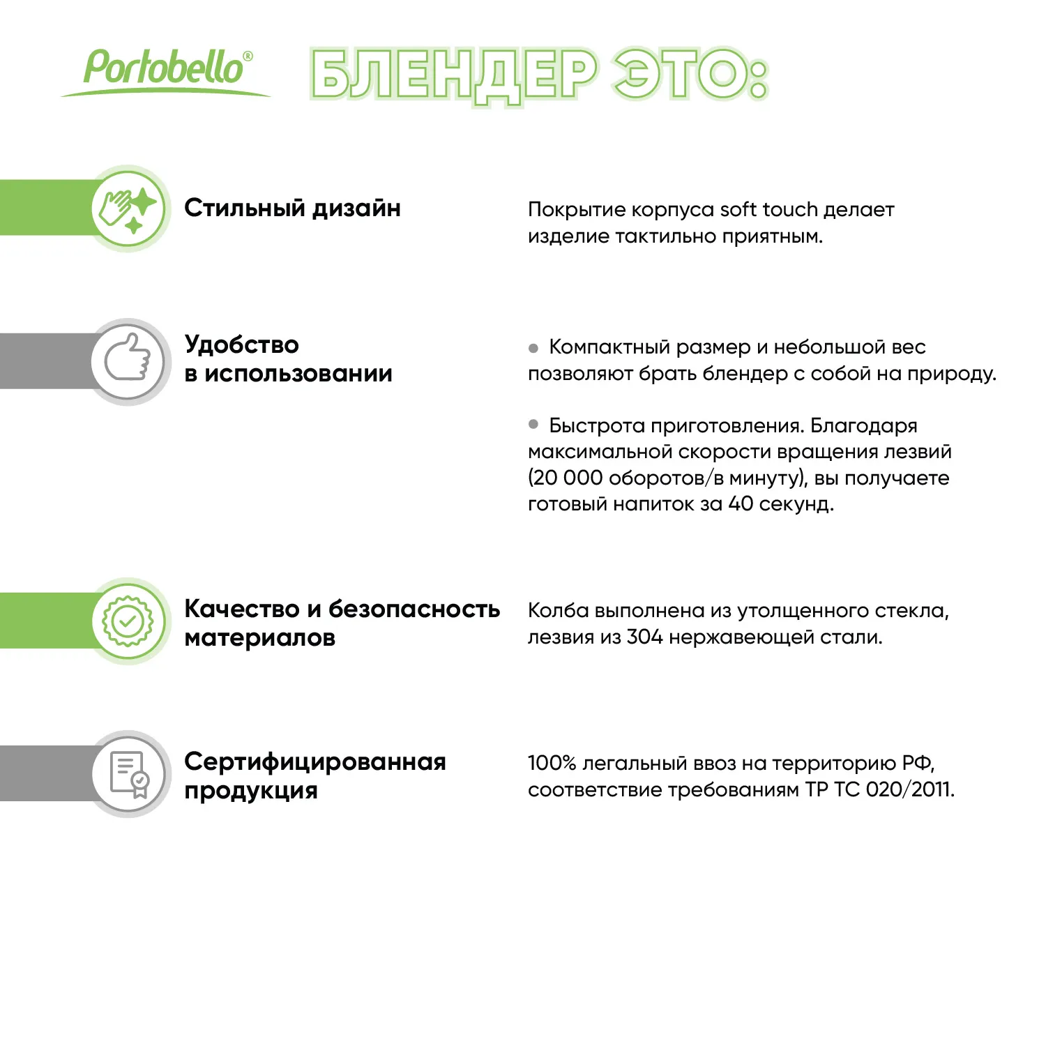 Колба выполнена из стекла, корпус – из PP-пластика, лезвия – из нержавеющей стали 304 марки.