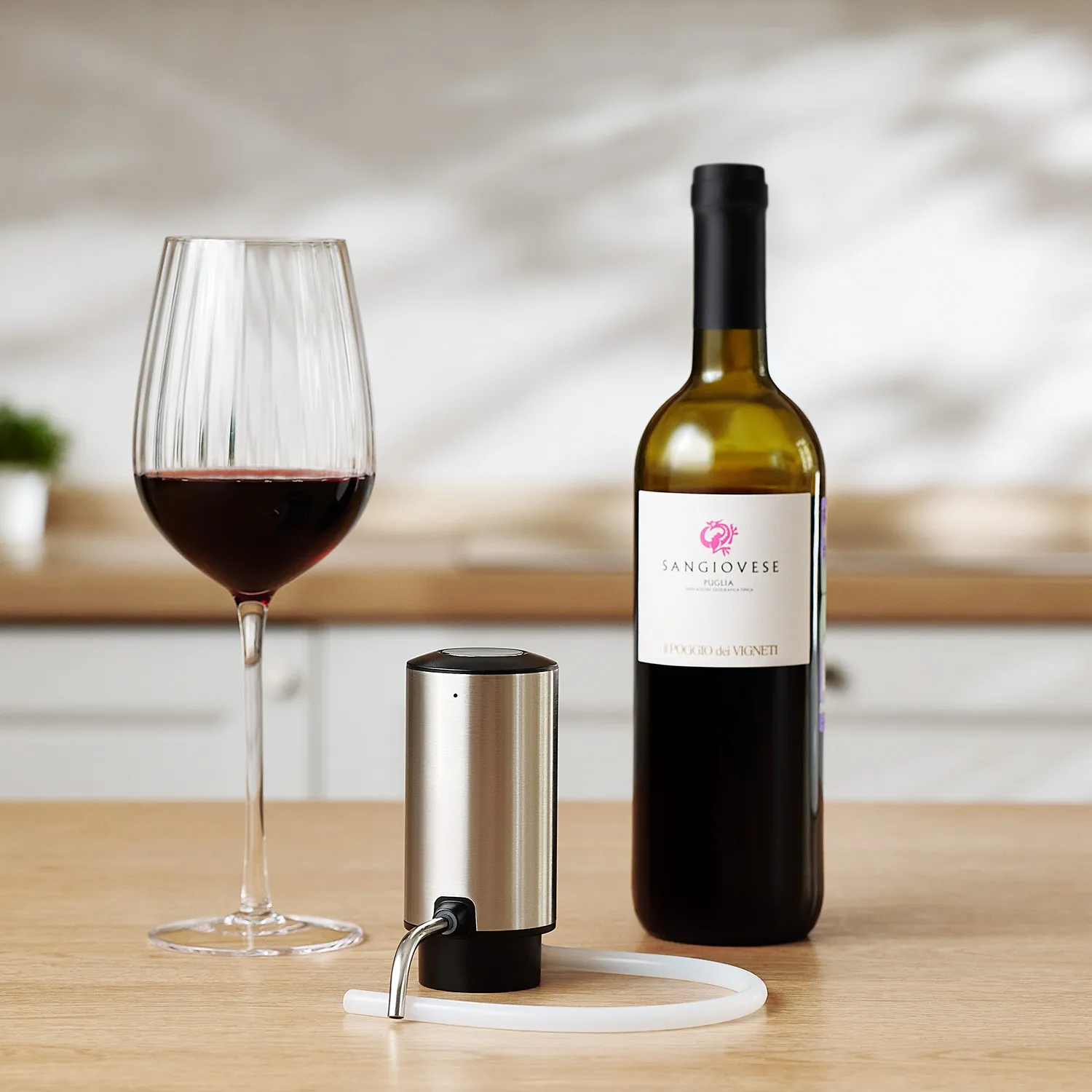 Материалы: Нержавеющая сталь и ABS-пластик для корпуса, силиконовая трубка для бережного контакта с вином.