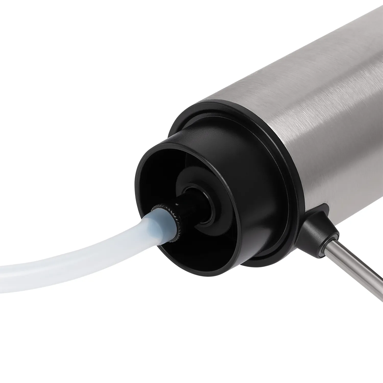 Материалы: Нержавеющая сталь и ABS-пластик для корпуса, силиконовая трубка для бережного контакта с вином.