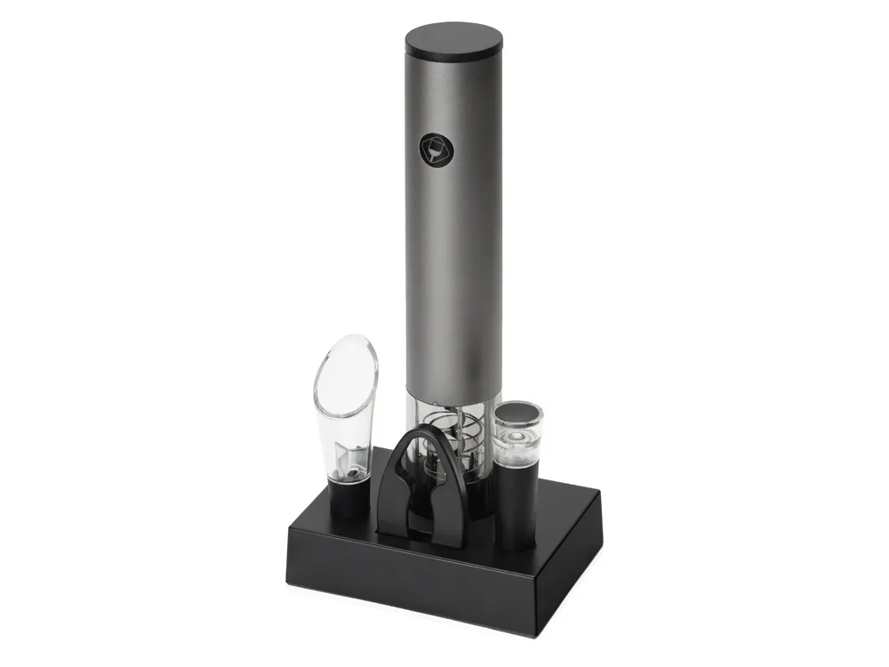 Набор «Palermo» от Master of Wine состоит из электрического штопора из алюминиевого сплава, пробки для вина, аэратора и ножа для фольги — с ним вы сможете откупорить вино и подготовить его к употреблению наилучшим образом. Штопор подзаряжается от док-станции, которая позволяет эффектно разместить винные аксессуары из набора, а также при использовании штопор подсвечивается, что прекрасно видно сквозь прозрачную нижнюю часть — превратите подготовку вина в настоящее зрелище! От вас не требуется никаких усилий: просто правильно разместите штопор поверх горлышка и слегка прикоснитесь к сенсорной кнопке, а если процесс не кажется вам очевидным — поможет инструкция, которая приложена к набору. О том, насколько штопор заряжен, расскажет цвет индикатора заряда: зеленый (полностью заряжен), синий (достаточно заряжен) или красный (требуется зарядка). Кстати, штопор можно использовать и с батарейками типа АА (4 штуки), но с ними запрещается устанавливать штопор на док-станцию. Аэратор-воронка плотно фиксируется на горлышке благодаря силиконовой вставке, проходя сквозь него напиток обогатится кислородом, что поможет раскрыть его вкус. Воронка же не даст капелькам пролиться мимо бокала. Вакуумная пробка решит вопрос недопитого остатка: сохраните вино на следующий день, несколькими движениями откачав воздух из бутылки. Нож для фольги надевается на запечатанную пробку сверху и проворачивается, срезая фольгу круглыми маленькими ножами. Набор упакован в коробку с бархатным ложементом. - качественные материалы - набор позволяет полностью подготовить вино к подаче - все принадлежности просты в использовании - сенсорная кнопка - штопор работает на аккумуляторе или батарейках - док-станция для подзарядки, а также для удобного размещения комплектующих