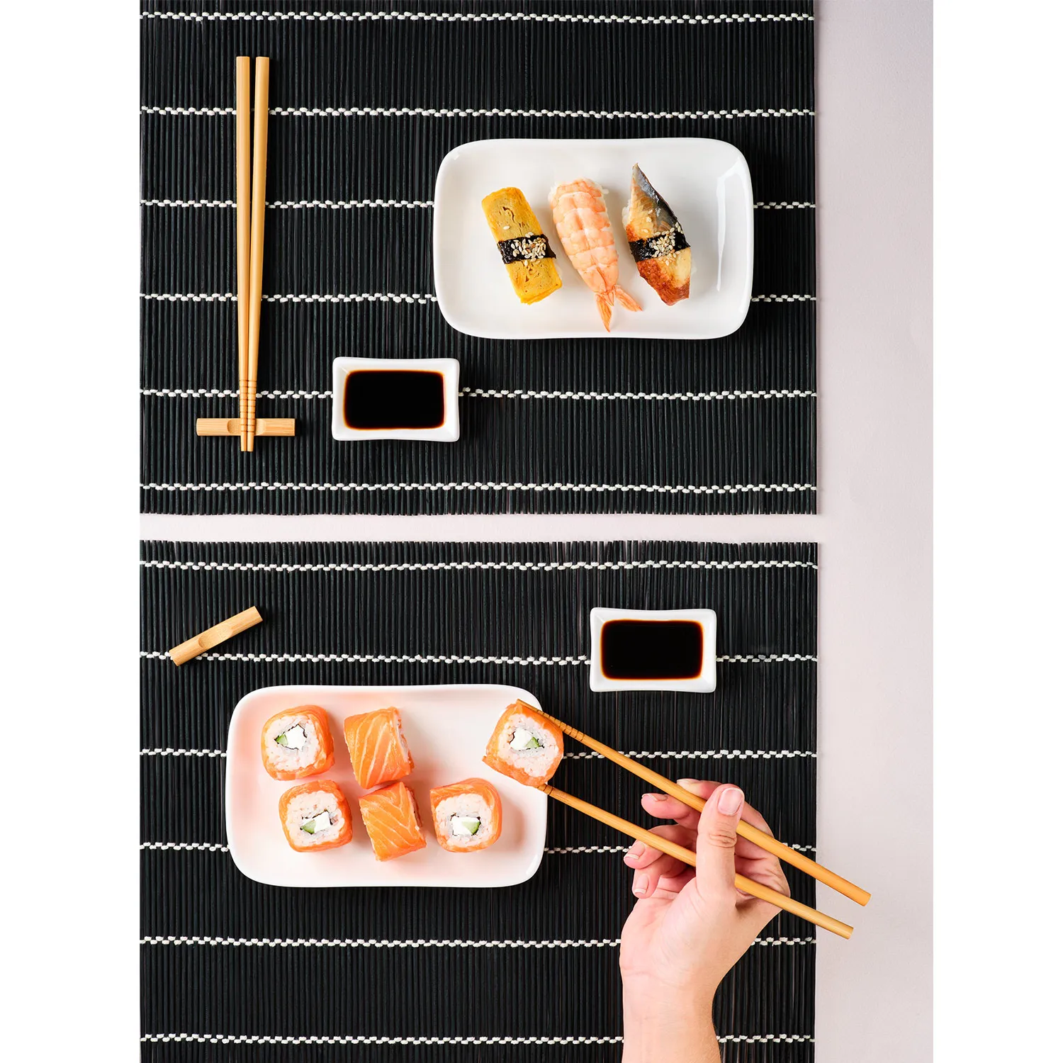 Набор для суши в классическом стиле отлично впишется в любой интерьер и поможет создать атмосферу аутентичного вечера. Изделие станет стильным и незаменимым аксессуаром для сервировки стола.