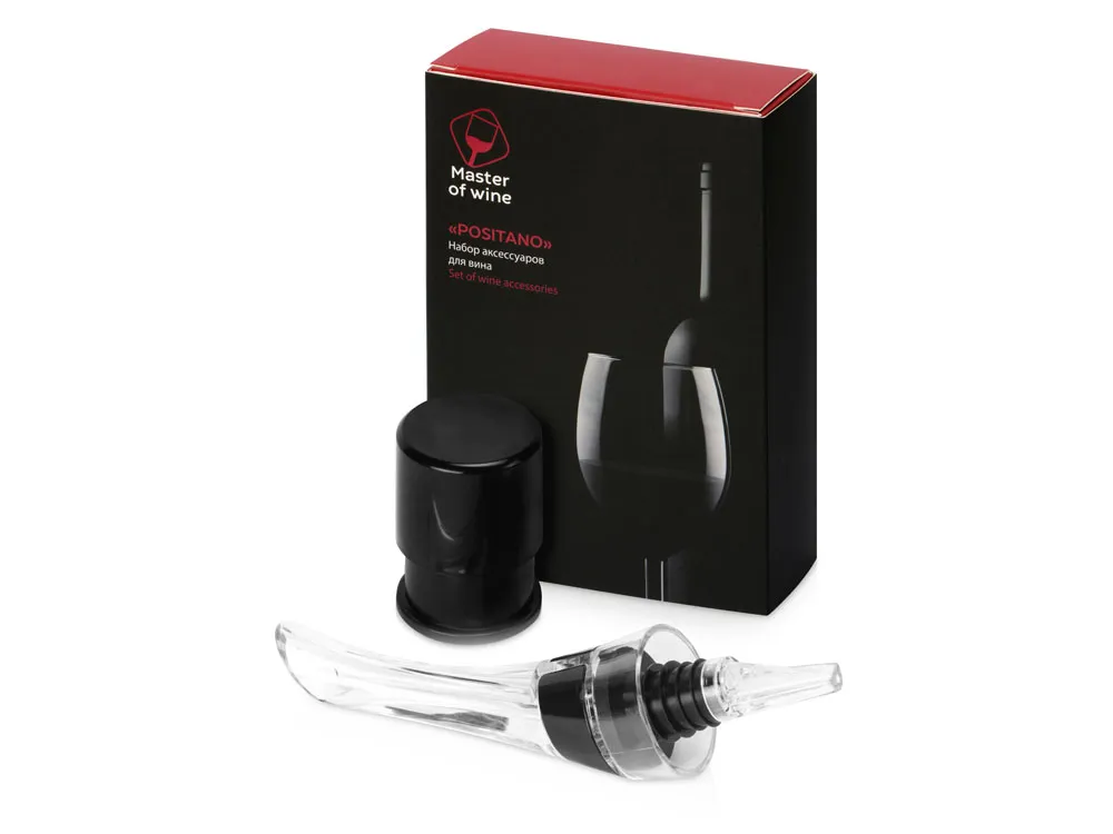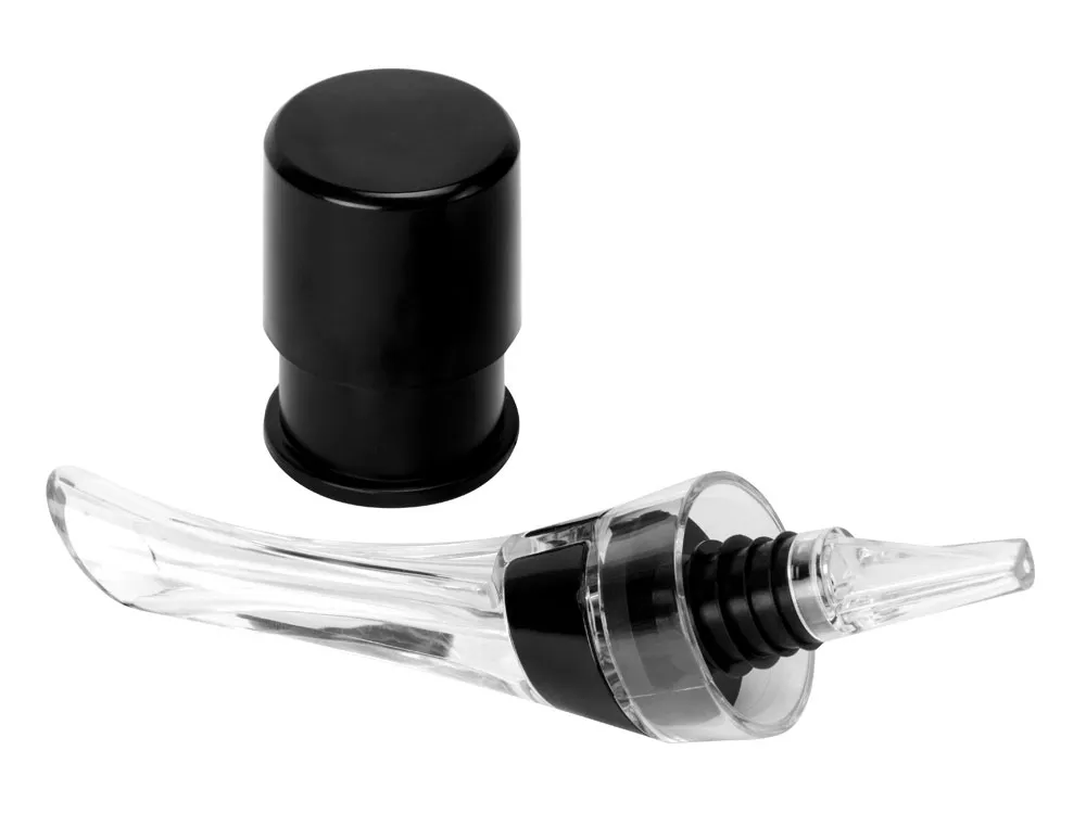 Набор аксессуаров для вина «Positano» бренда Master of Wine состоит из вакуумной пробки и аэратора. Оба приспособления помогут вам насладиться вином — раскроет вкус и насытит вино кислородом аэратор, а сохранит свежесть напитка вакуумная пробка. Аэратор надевается на горлышко бутылки, после чего вино разливается по бокалам. Проходя сквозь аэратор, вино насыщается кислородом, что улучшает его вкус, а еще с этим приспособлением вам будет гораздо легче аккуратно разлить вино из бутылки, не пролив и капельки. Силиконовое кольцо обеспечивает плотную и надежную посадку на горлышке, а насыщение воздухом происходит через два отверстия на корпусе. Прозрачное акриловое стекло делает разлив вина еще и красивым, позволяя наблюдать за потоком благородного напитка. Пробка пригодится в тех случаях, когда бутылка еще полна, а пить уже не хочется. Сохраните вино до 7 дней, закупорив его вакуумной пробкой — для этого просто наденьте на горлышко приспособление и нажмите несколько раз на него. Готово! Набор упакован в коробку с вырубленным ложементом, который представит подарок в самом достойном виде адресату, а поверх коробки предусмотрен шубер. - безопасные для человека материалы: силикон, АБС пластик, акриловое стекло - пробку и аэратор просто использовать - подарочная коробка с шубером решает вопрос упаковки