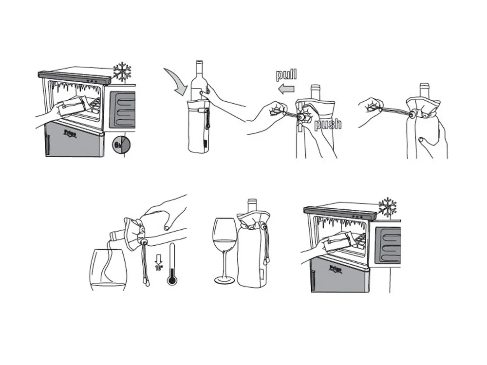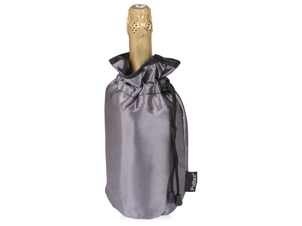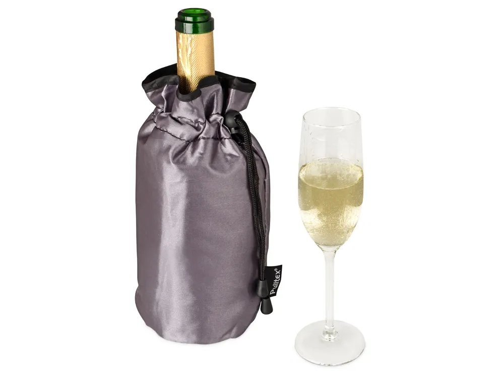 Охладитель в виде мешочка сохранит идеальную температуру бутылки шампанского в течение всего приема пищи. Храните охладитель в морозильной камере, чтобы он был готов к использованию в случае необходимости. Данный охладитель снаружи покрыт плотной тканью, которая придает ему элегантный и стильный вид. Внутренняя часть охладителя сделана из теплоизоляционного материала с добавлением "охлаждающего" геля, который предотвращает нагревание игристого вина . Сумка закрепляется ремешком в верхней части, выполняя при этом двойную функцию - фиксация бутылки и сохранение холода в мешочке.