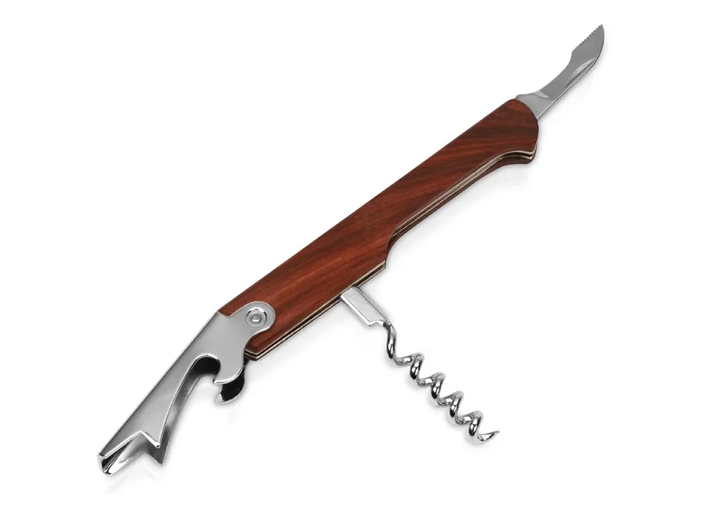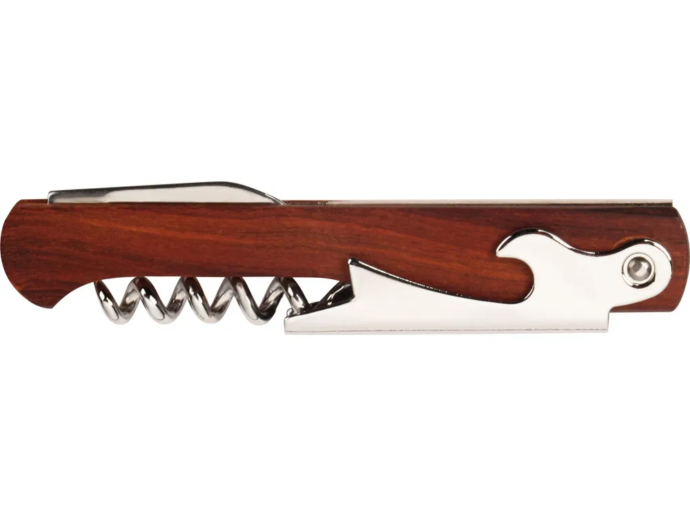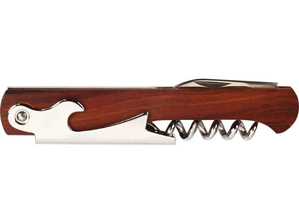Компактный складной штопор "Wine expert" - аксессуар, который пригодится, как дома, так и во время отдыха на природе. В штопоре также имеется небольшой ножик и открывалка для бутылок. Выполнен в деревянном корпусе, который выглядит стильно и эргономично.