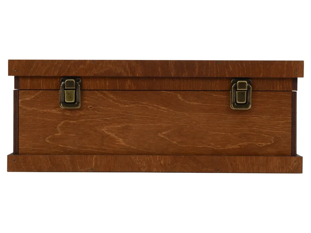 Подарочный набор придется по вкусу подлинным эстетам и ценителям вин. Для легких на подъем — в деревянном сундучке уместится все, что нужно для внезапного праздника: бутылка вина, пара бокалов, штопор, пробка и даже воротничок для бутылки. Удобство и безопасность переноски хрупких предметов обеспечивает наполнитель. Обратите внимание: комплектация подарка не включает в себя напиток — настоящие ценители предпочтут подобрать вино на свой вкус. Размеры: ячейка под бутылку 31 х 8,7 х 9 см ячейка под бокал 15,5 х 9 х 9 см