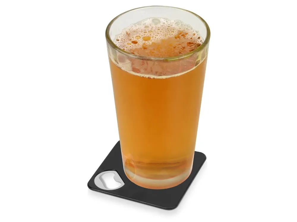 Пластиковая подставка идеально подходит для бокалов различной формы. Также подставка снабжена удобной открывалкой для бутылок. Поверхность сувенира легко персонализировать с помощью УФ-печати или тампопечати. Нижняя сторона подставки покрыта материалом, который не позволит бокалу соскользнуть со стола. Подставка с открывалкой для бокалов «Liso» - идеальный подарок для всех любителей пенного!