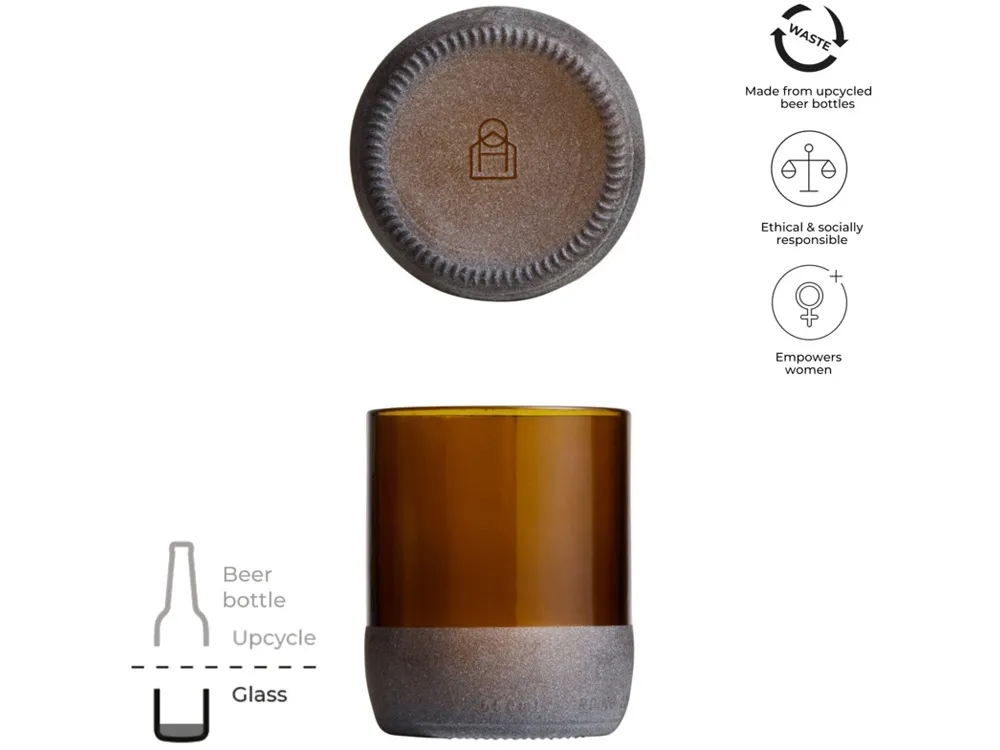 Набор из двух бокалов емкостью 160 мл, изготовленных из переработанных пивных бутылок. Переработанное стекло.