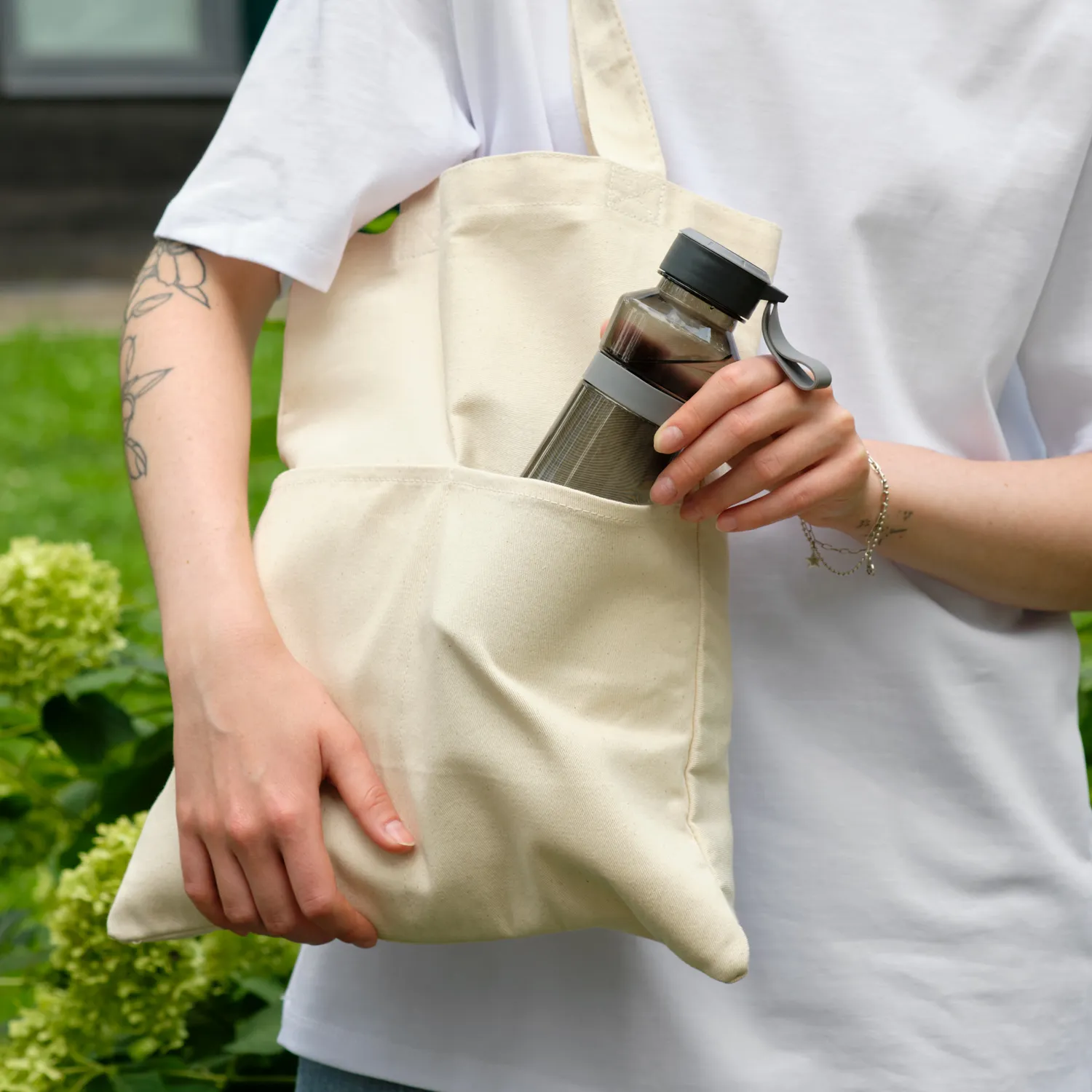 Откручивающаяся крышка защищает от случайного проливания. Благодаря силиконовой манжете бутылку удобно держать в руке.