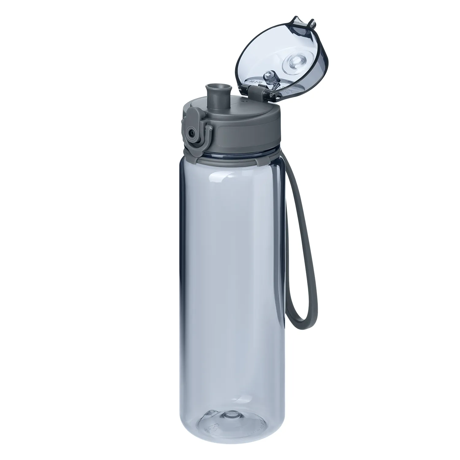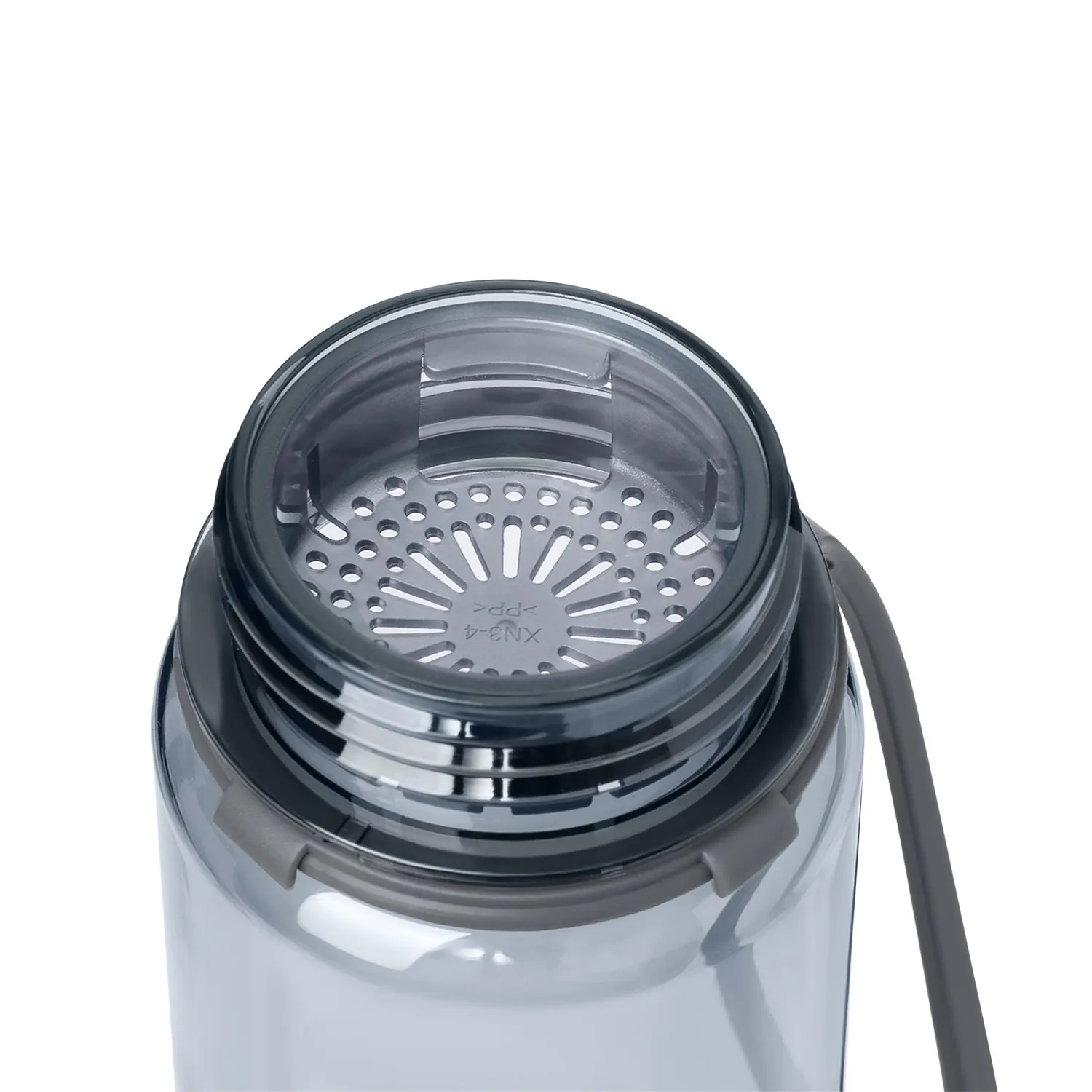 Прочная и легкая, она изготовлена из экологичного пластика без содержания БФА — идеально для тех, кто заботится о здоровье и окружающей среде. Удобная крышка с фиксатором клапана надежно защищает от протекания и случайного открытия, а ремешок-петля удобен для переноски — в спортзале и в повседневных делах.