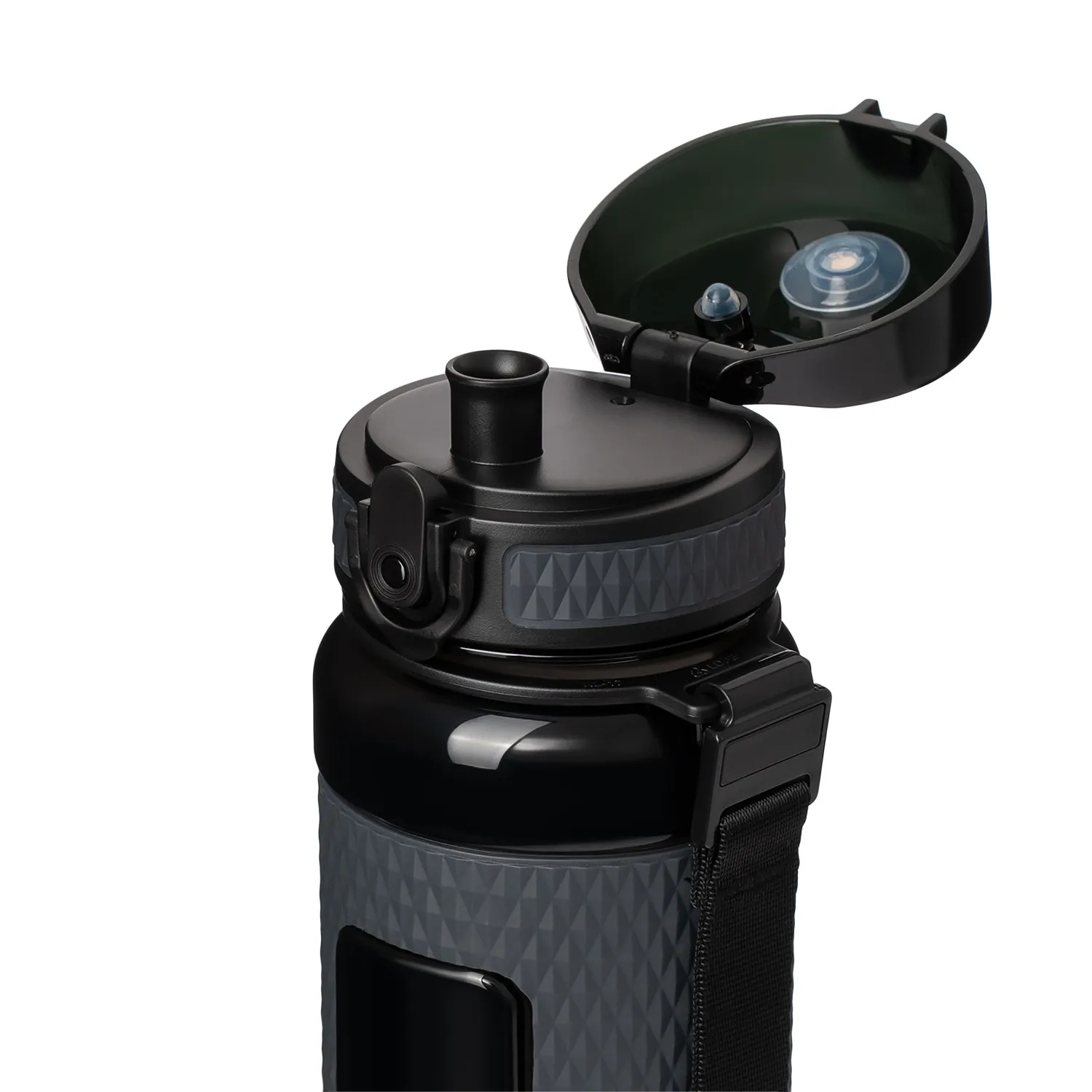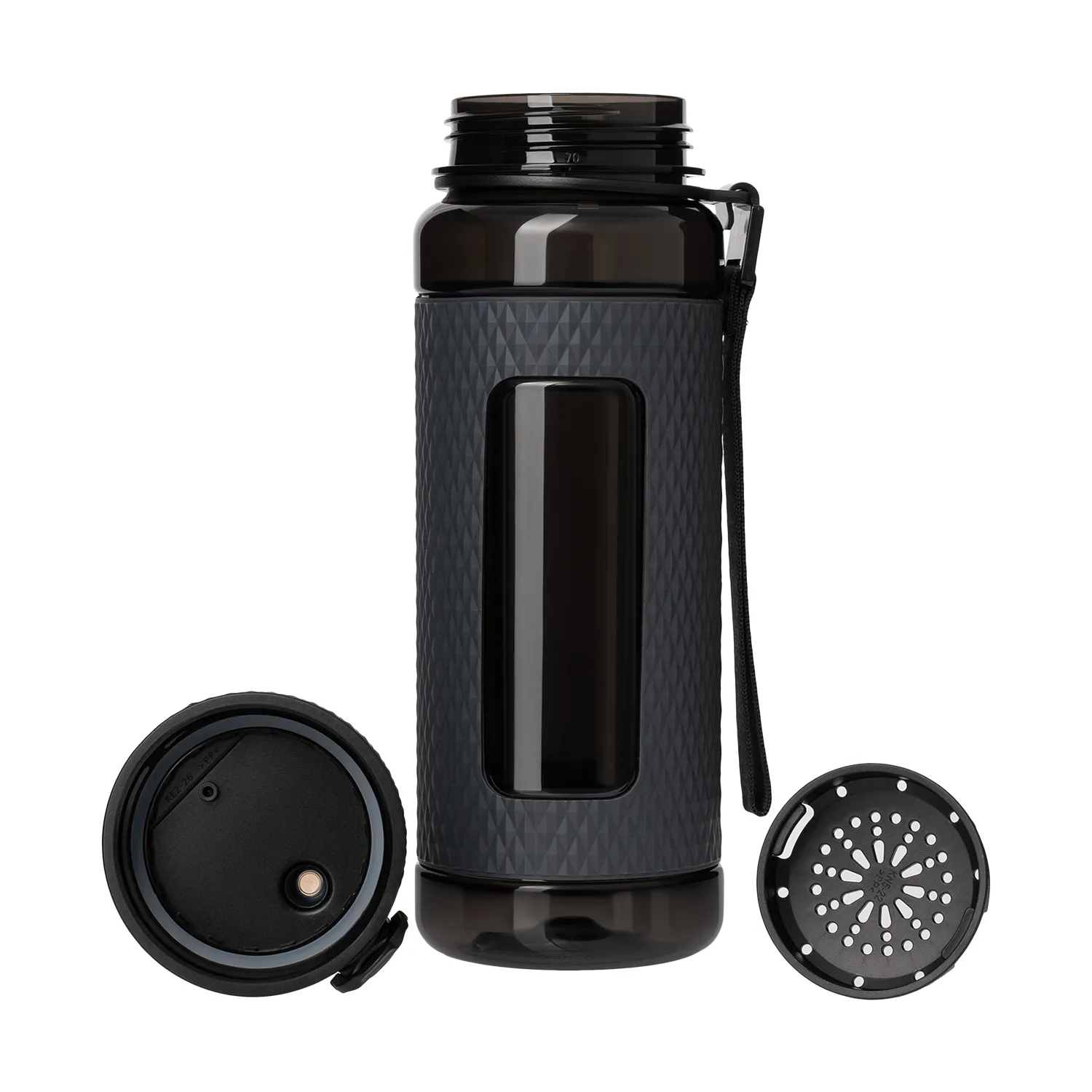 Удобная откидная крышка с кнопкой и эргономичное питьевое горлышко обеспечат комфортное использование, а съёмный фильтр позволит наслаждаться любимыми напитками с фруктами или ягодами. Прозрачный элемент на корпусе не только добавляет стильный акцент, но и позволяет контролировать уровень жидкости внутри бутылки.