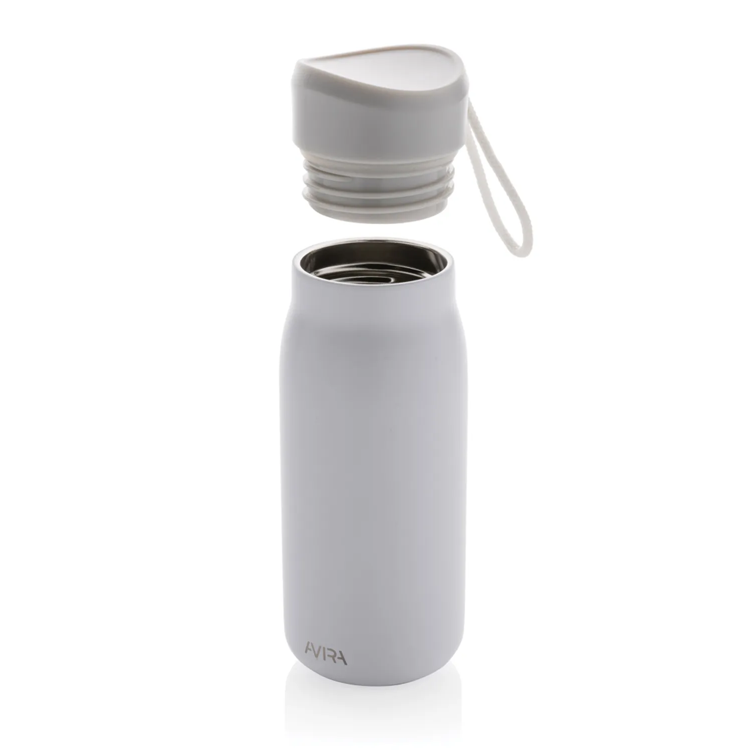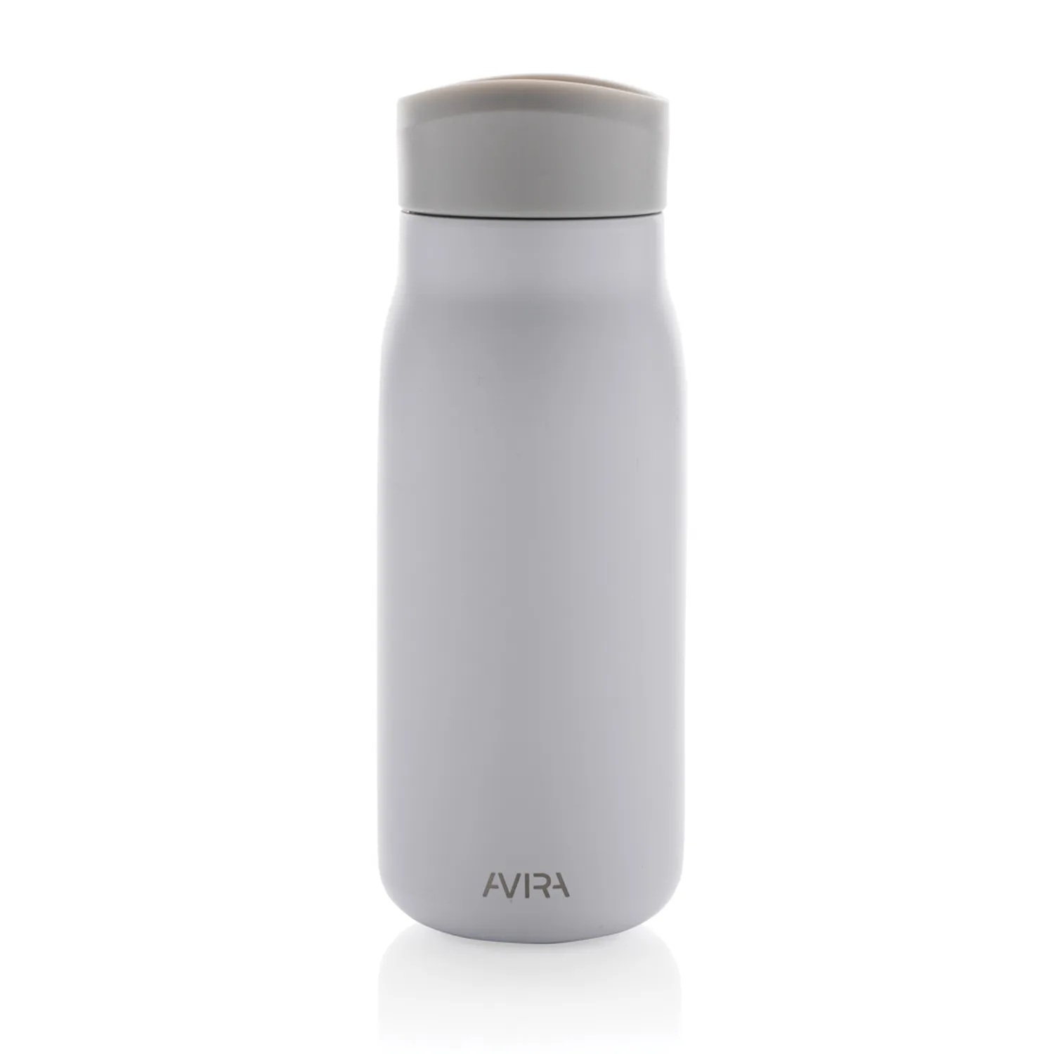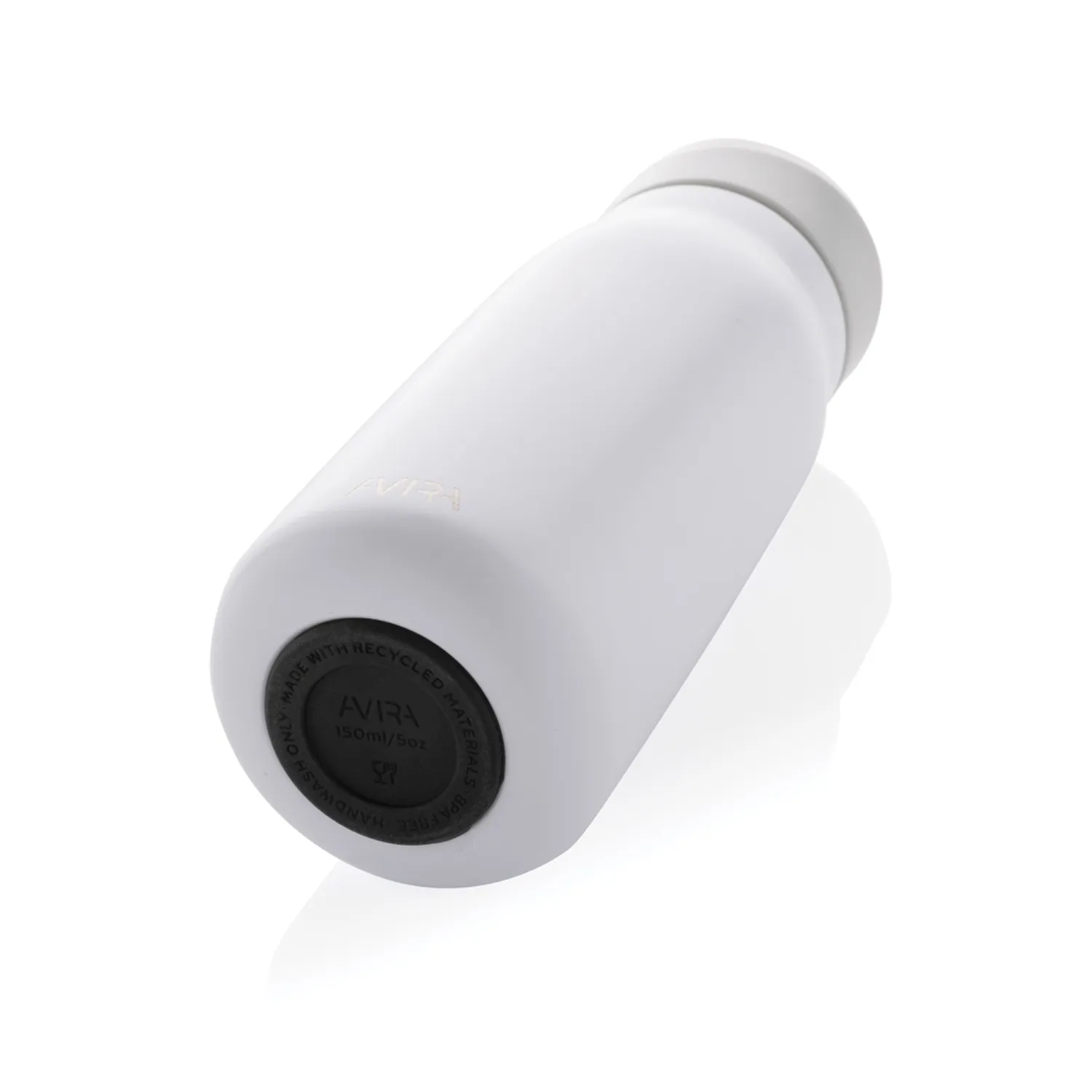 Любите кофе и не представляете поездок без этого ароматного напитка? Теперь вы можете брать любимый кофе с собой: для этого идеально подойдет термобутылка Avira Ain емкостью 150 миллилитров. Двойные стенки бутылки сохраняют напиток горячим до 5 и холодным до 15 часов, а из широкого горлышка удобно и пить, и наливать напиток в чашку. Небольшой размер термобутылки позволяет носить ее в любой сумке. Крышка герметична и гарантирует защиту от протекания. Термобутылка изготовлена из переработанной стали, сертифицированной RCS. Упаковано в крафтовую коробку, сертифицированную FSC®. Упаковку можно превратить в подставку для телефона, карандашей или цветочный горшок. Сертификат RCS гарантирует полный контроль цепочки поставок переработанных материалов.