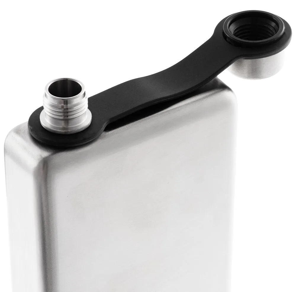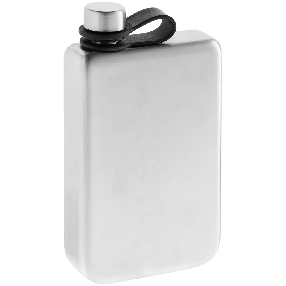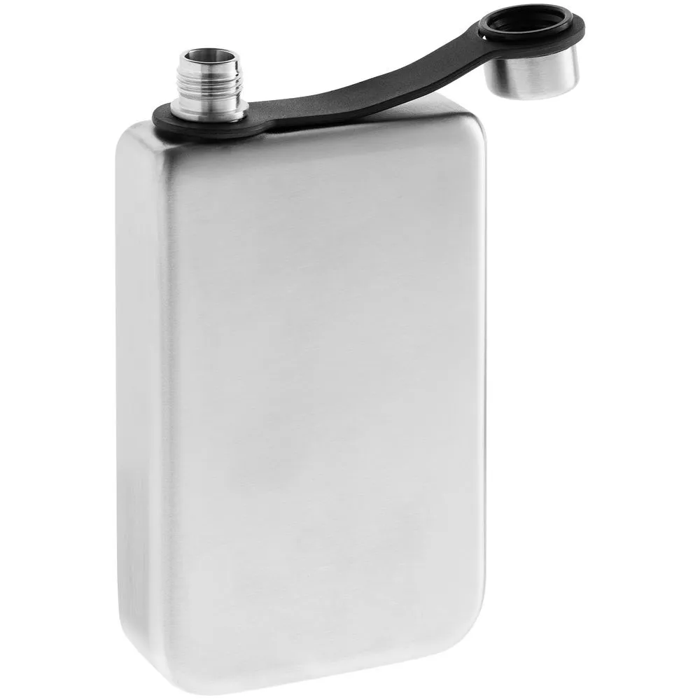 Завинчивающаяся крышка надежно крепится к горлышку ремешком, за который также удобно подвешивать и саму фляжку, например, на рюкзак.