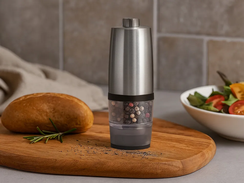 Электрическая мельница для специй «Origanum» Современная и удобная электрическая мельница для соли, перца и других специй. Работает от 4 батареек AAA (не входят в комплект) — одним нажатием измельчает специи до нужной степени помола. - Корпус из нержавеющей стали — прочный и стильный - Керамические жернова — долговечность и чистый вкус - Емкость из ударопрочного прозрачного пластика — удобно контролировать остаток - Объём: 20 г — компактный и вместительный формат для ежедневного использования Идеальный аксессуар для кухни и стильный подарок для тех, кто ценит вкус и эстетику.