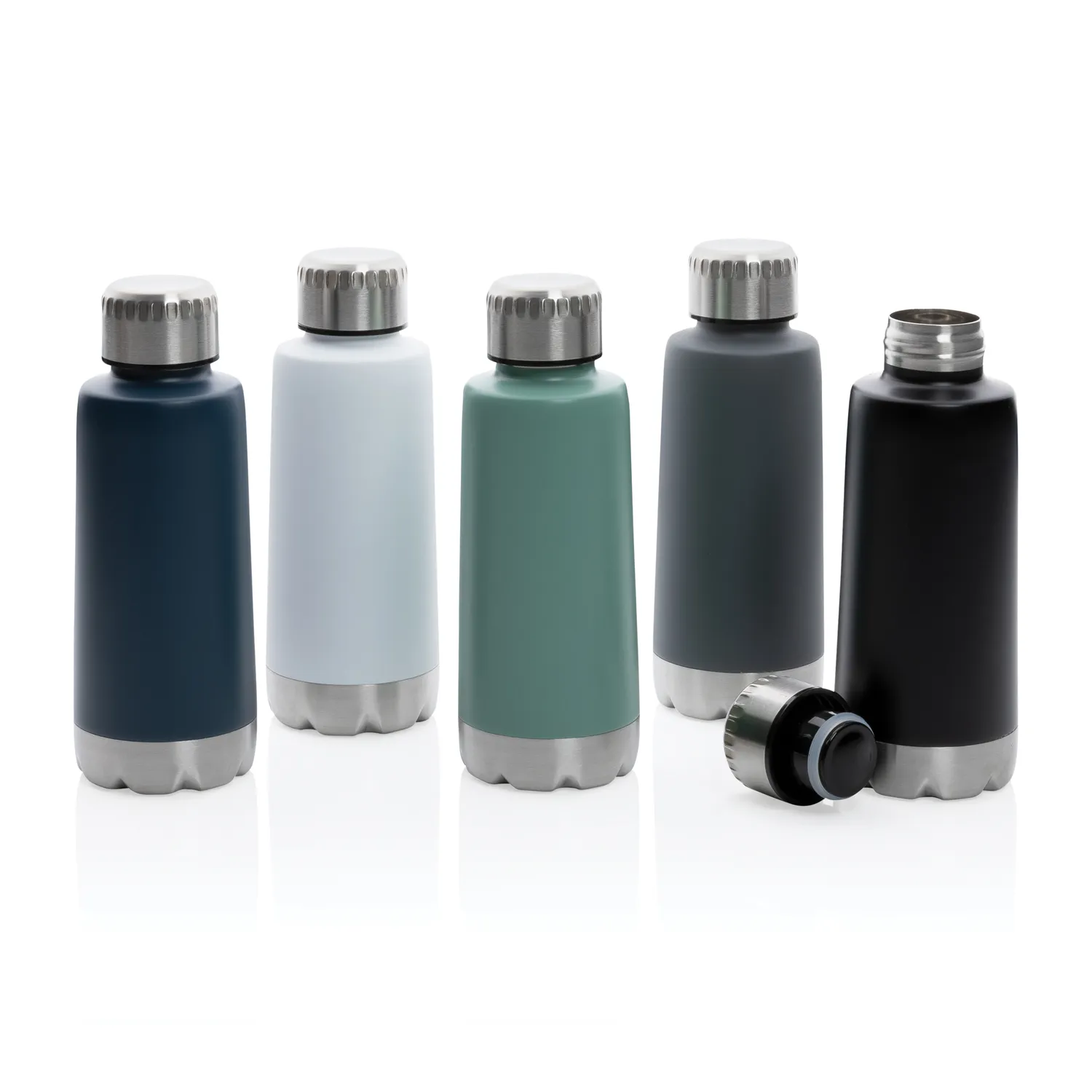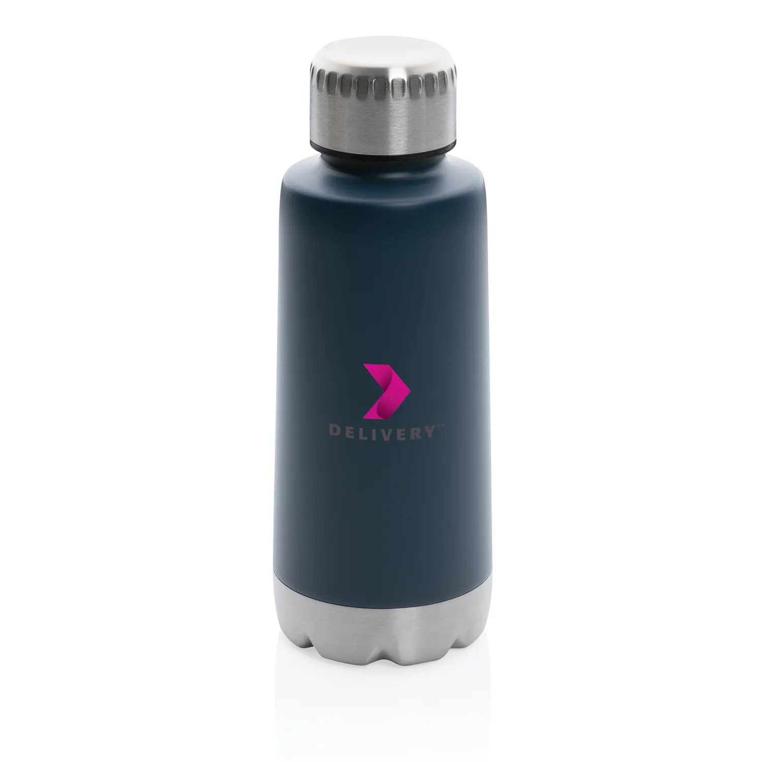 Стильная и легкая бутылка из нержавеющей стали! Идеально подойдет для коротких поездок и прогулок на свежем воздухе. Уникальная форма и несколько модных оттенков. Вакуумная бутылка Trend способна сохранить ваши любимые напитки горячими до 6 и холодными до 8 часов. Полная герметичность возможна благодаря закручивающейся крышке. Не содержит BPA. Объем 350 мл.