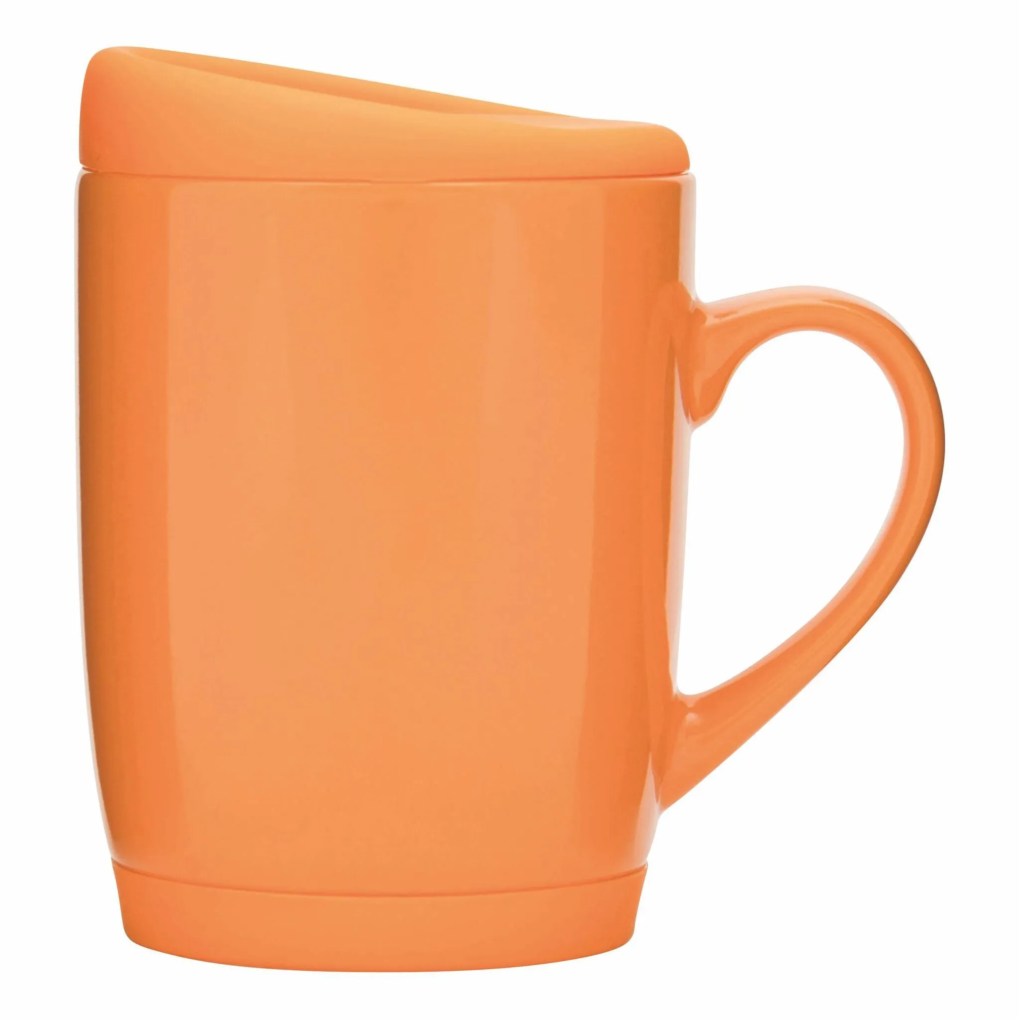Керамическая кружка EASY DAY со съемной силиконовой подставкой и силиконовой крышкой, предохраняющей от проливания, вместимость ок. 350 мл, в белой коробке