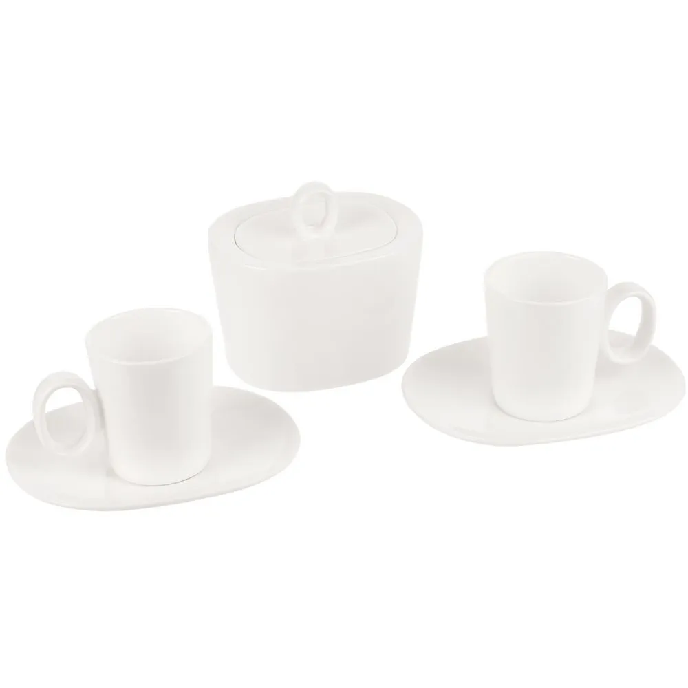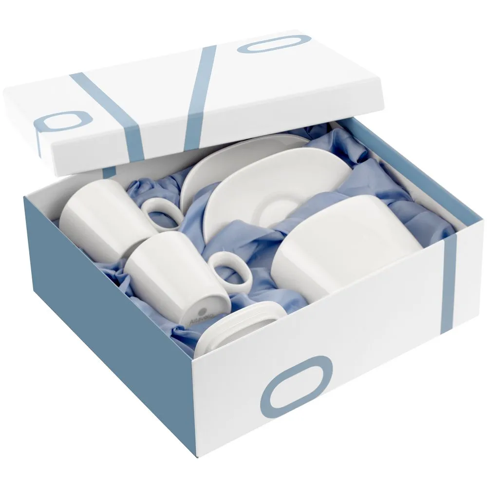 В комплекте 2 кофейных пары и сахарница.