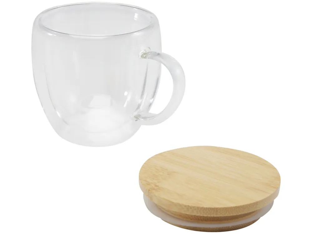 Стеклянная кружка Lenora объёмом 250 мл с двойными стенками и стильной бамбуковой крышкой. Она дольше сохраняет температуру напитка, помогает избежать проливов и бережно удерживает его аромат. Идеальный выбор для уютного чаепития или кофе-паузы. Не рекомендуется использовать в посудомоечной машине.