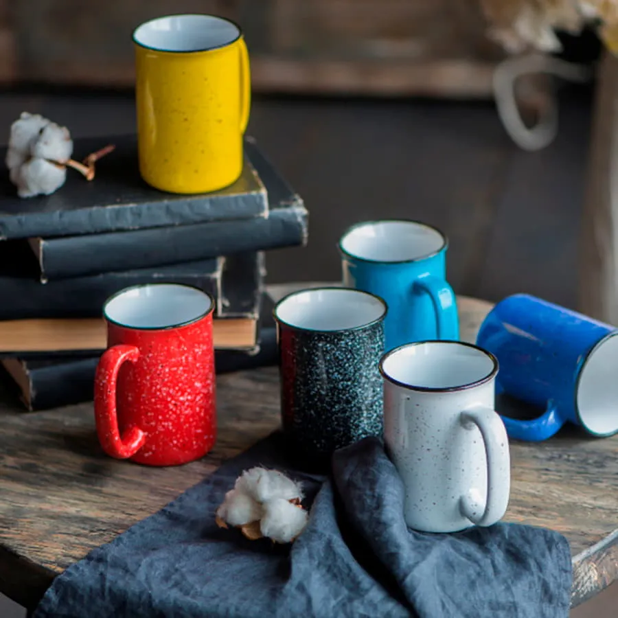 Необычный дизайн кружки получился путем создания эффекта брызг на поверхности. Они нанесены неравномерно и лишь подчеркивают уникальность каждой кружки. Точки краски различной величины напоминают хаотично разбросанные по ночному небу звезды. Вместительная кружка с очень удобной ручкой.