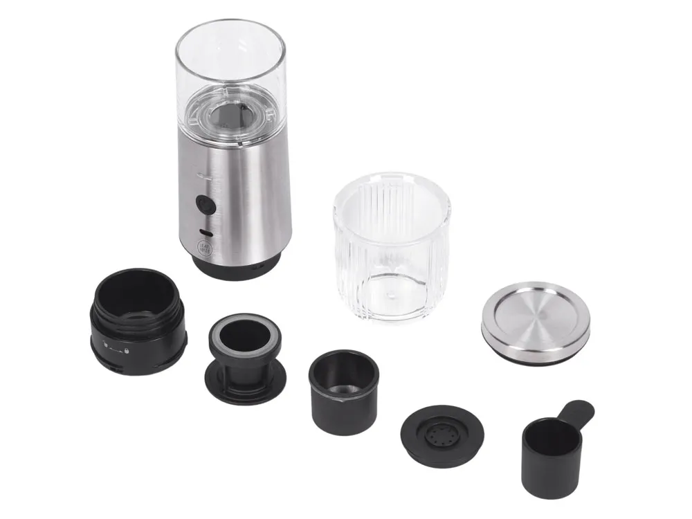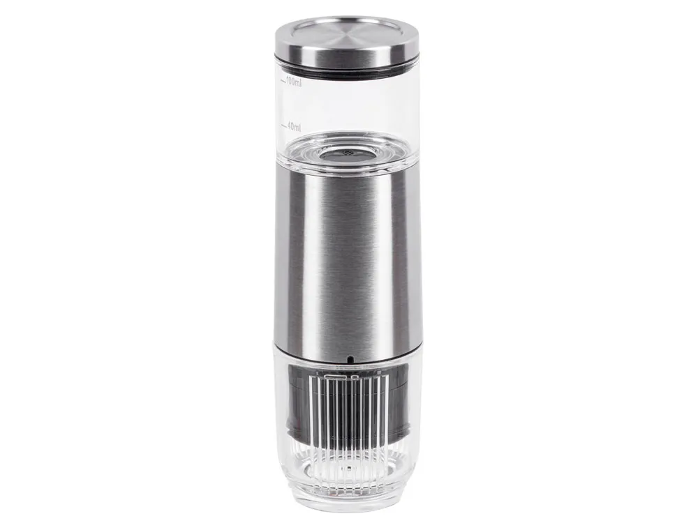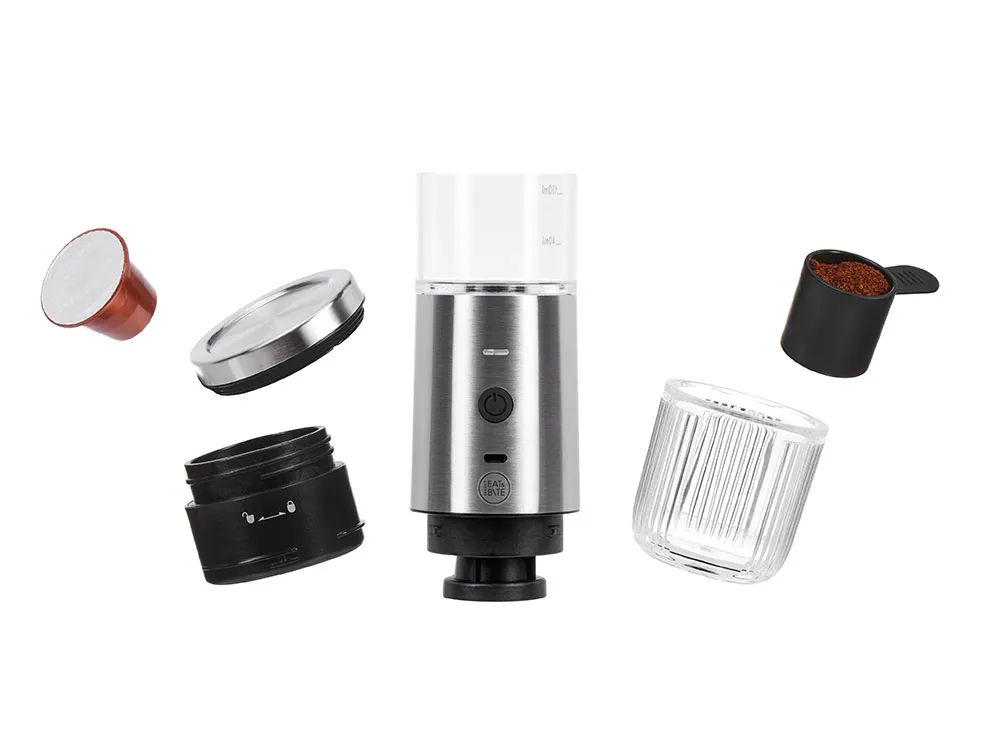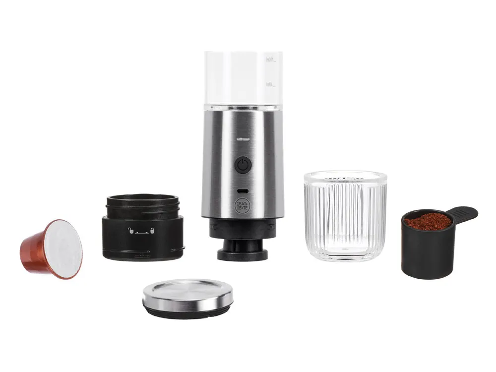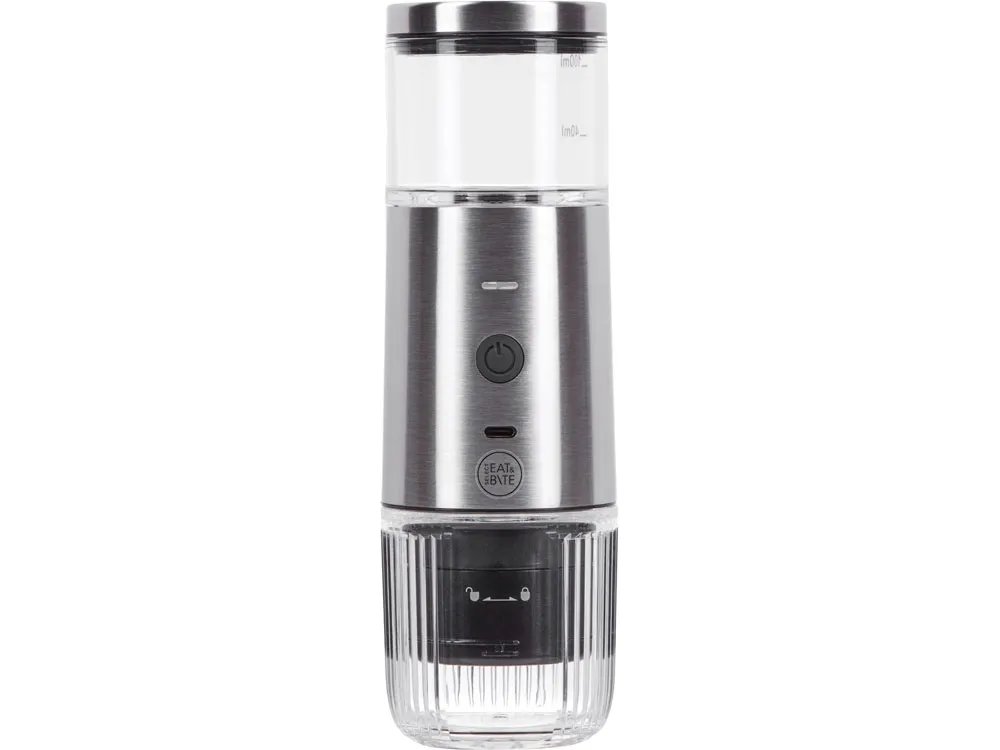 Выпить свежесваренный кофе на пикнике? Нет ничего проще! С портативной кофемашиной от бренда Eat&Bite select кофе всегда будет у Вас под рукой! Приготовить можно 2 вида кофе — эспрессо и лунго (40 и 100 мл) двумя способами: заварить молотый кофе или капсулу типа Nespresso. Для каждого способа заваривания есть своя ёмкость. Мерная ложечка для молотого кофе идёт в комплекте. Кофемашина проста в использовании, а высококачественные материалы обеспечат долгий срок службы устройства. Как использовать (на примере с капсулой): 1) Раскрутить с обеих сторон резервуары. 2) Установить капсулу в соответствующую мини-емкость, немного нажать, чтобы капсула в ней крепко зафиксировалась. 3) Далее установить эту мини-емкость в резервуар, предназначенный для кофе и его же закрутить к основному корпусу машины. 4) Емкость для воды заполнить горячей водой и закрутить к корпусу с обратной стороны. Для эспрессо наливаем 40 мл, для лунго 100 мл воды. 5) Закрыть крышкой, подставить чашу для кофе, нажать на кнопку включения. 6) По окончании приготовления кофе, машина автоматически остановится. Robusta — отличный спутник в командировке или поездке в автомобиле. На одном заряде кофемашина может приготовить до 60 чашек кофе, и точно подарит заядлому кофеману возможность почувствовать себя комфортно вдали от дома. Мыть кофемашину необходимо только вручную, мойка в посудомоечной машине не подходит. - 2 вида кофе (эспрессо/лунго, 40/100 мл); - 2 способа использования: капсулы типа Nespresso, молотый кофе - до 60 чашек на одной зарядке; - удобно брать в дорогу; - ёмкость аккумулятора 2000 мАч; - мерная ложка в комплекте; - только для ручной мойки.