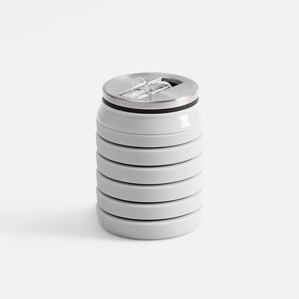 Складная бутылка для воды Folla привлекает внимание своим необычным внешним видом и функциональностью. По форме она больше всего напоминает классическую алюминиевую банку для напитков. При этом ее высоту можно легко увеличить с 10 до 20 см. В сложенном виде бутылка поместится даже в небольшую сумочку, а полный полезный объем составляет целых 480 мл.