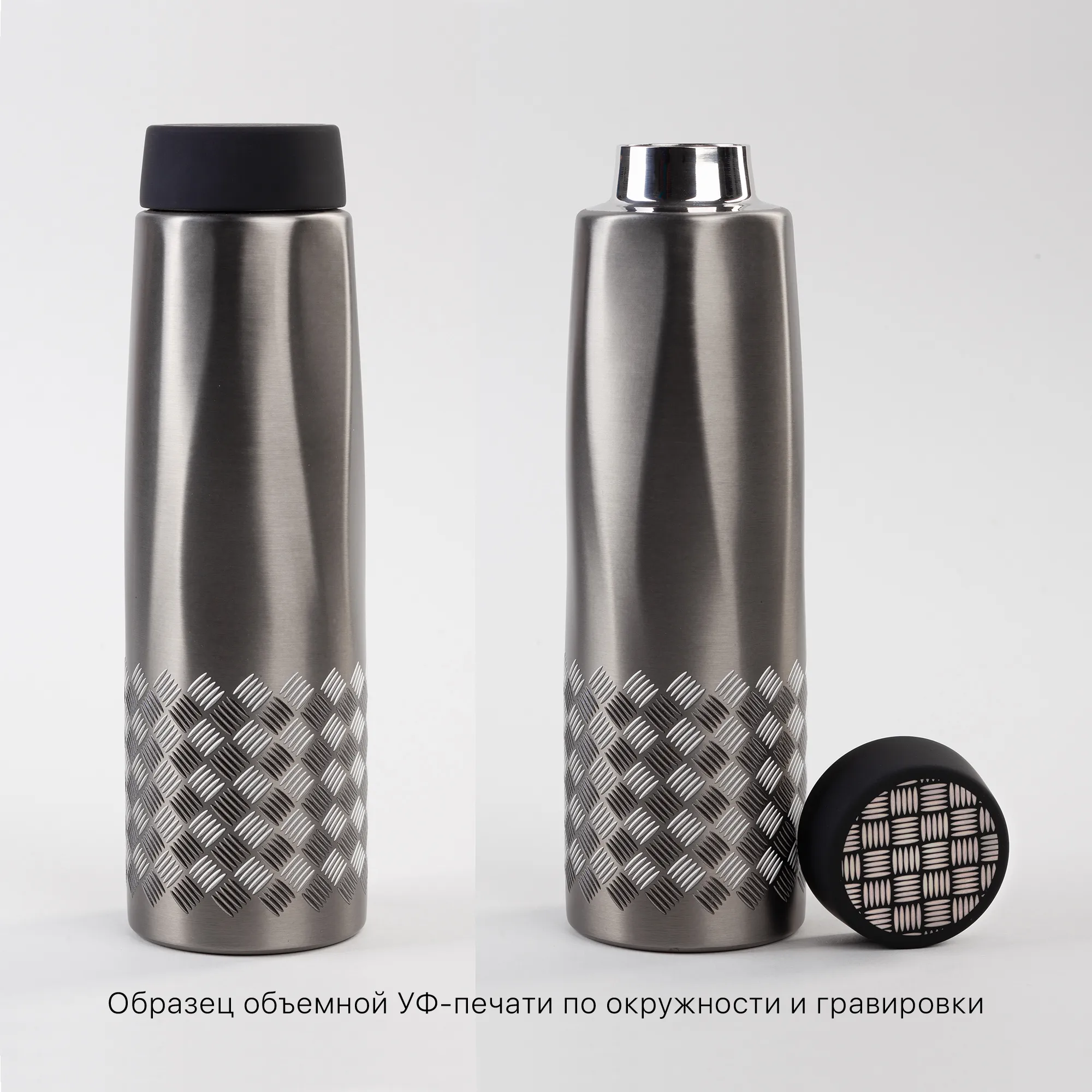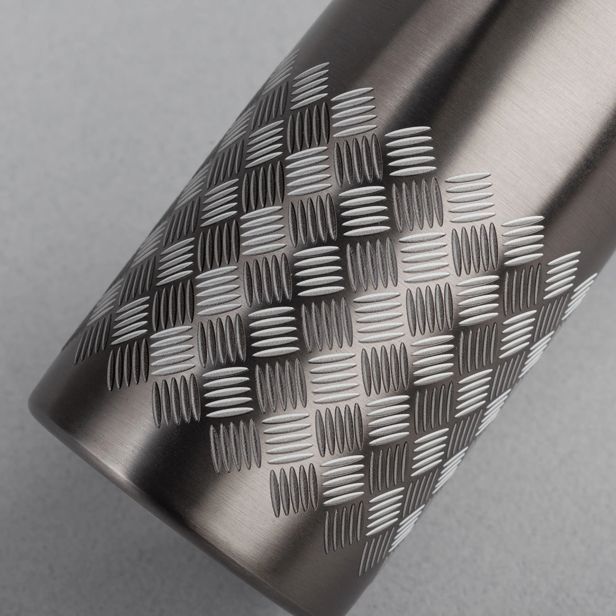 Стальной корпус термоса особенно выразительно подчеркивает рельефные «языки пламени», плавно переходящие в идеальный цилиндр. Крышка черного цвета выполнена в покрытии soft touch. Полностью герметичный. Компактный объём в 500 мл удобно брать с собой в путешествия, поездки или на прогулку. Горячий, согревающий напиток или прохладный освежающий коктейль – выбор за вами! Можно мыть в посудомоечной машине (без крышки).