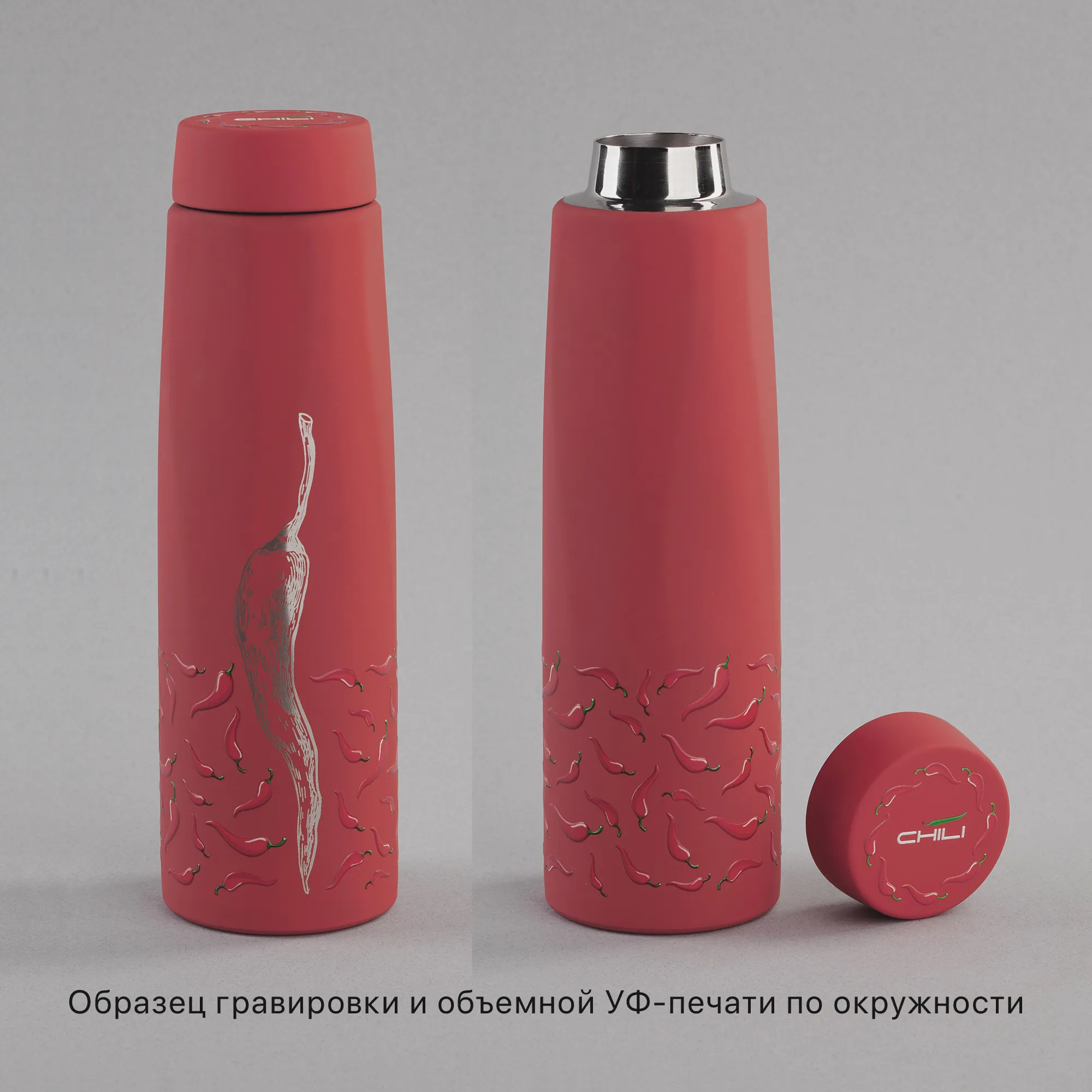 Рельефный корпус термоса напоминает «языки пламени», сразу притягивает к себе внимание. Бархатистое покрытие soft touch создаёт мягкий тактильный эффект и, кроме того, позволяет увеличить поле для нанесения (применительно к газовому CO лазеру). Полностью герметичный. Компактный объём в 500 мл удобно брать с собой в путешествия, поездки или на прогулку. Горячий, согревающий напиток или прохладный освежающий коктейль – выбор за вами!