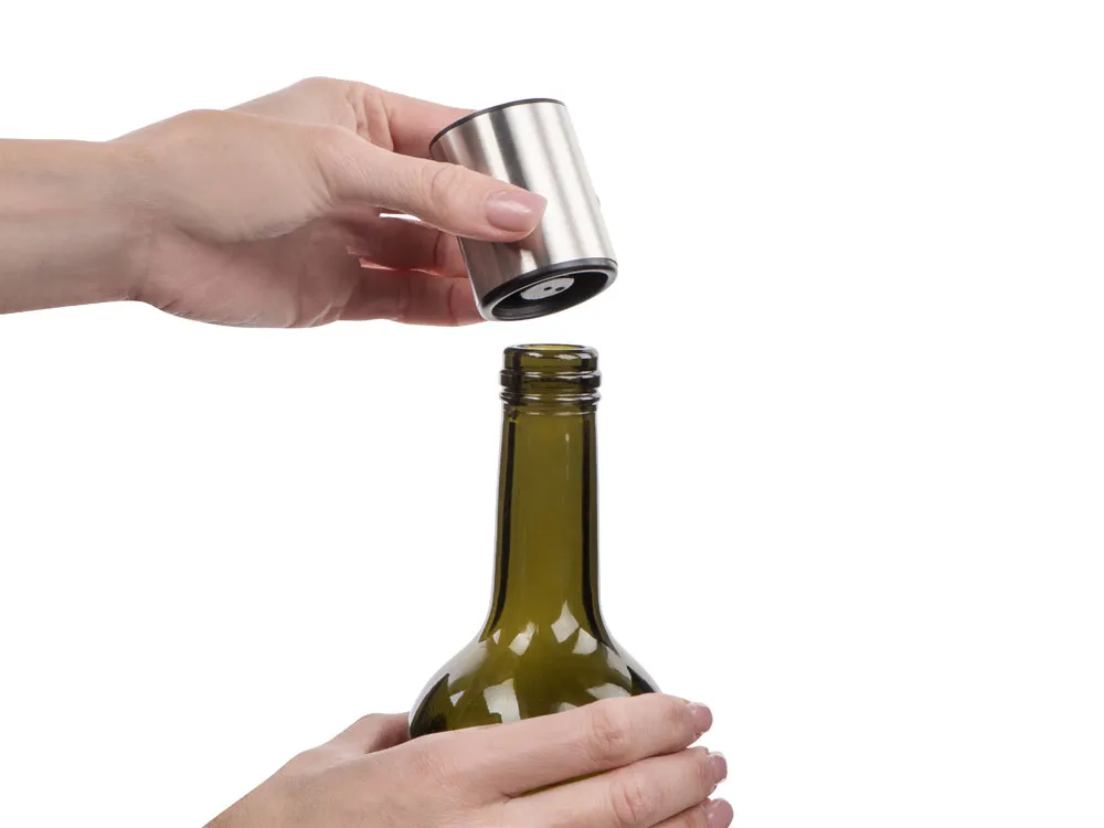Вакуумная пробка бренда Master of Wine предназначена для бутылок с тихим вином. Проста в использовании: для откачивания воздуха вам нужно просто нажать на нее несколько (5-7) раз. Готово! После откачки воздуха из бутылки напиток остается свежим в среднем около недели — благодаря пробке вы сможете насладиться вкусом вина даже после застолья. На сохранность вина при таком хранении также влияют и иные факторы: температура воздуха (лучше хранить в холодильнике), сорт винограда и другое. - сохранит вино свежим после вскрытия - брендируется несколькими методами на ваш вкус - дизайн продолжает общий стиль Master of Wine, можно сочетать с другими товарами бренда для создания сета - поставляется в фирменной упаковке бренда - проста в использовании