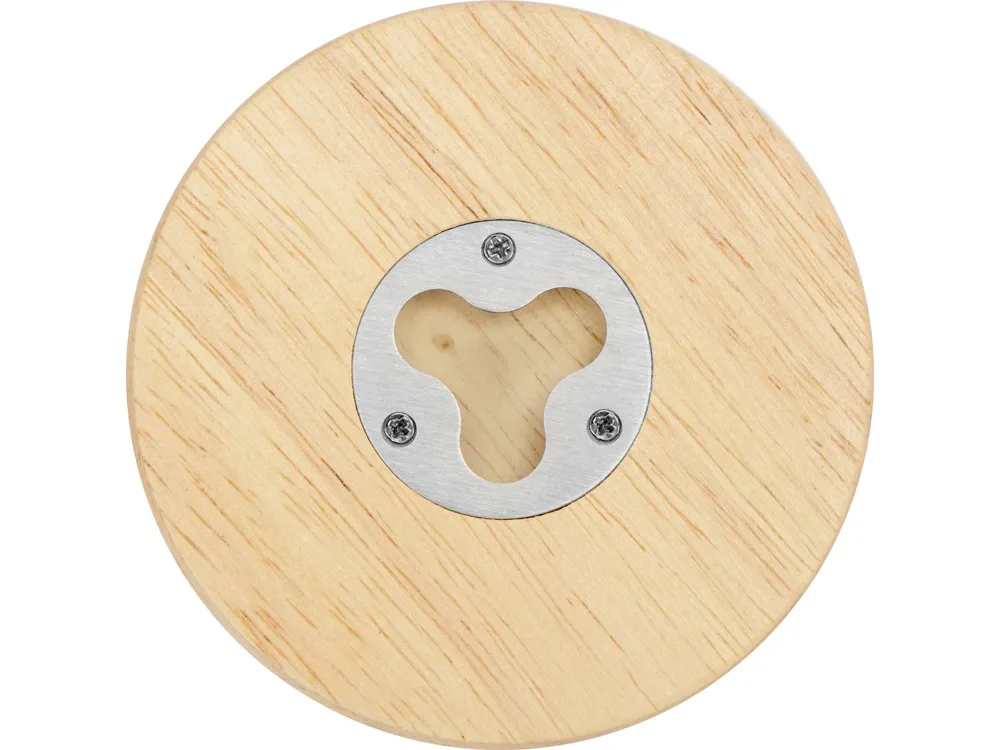 Костер выполнен из твердого и прочного букового дерева. Одна его сторона используется в качестве подставки под горячие напитки, а другая служит открывашкой для бутылок. Такое приспособление пригодится тем, кто часто ездит на рыбалку и охоту, устраивает пикники на даче и в городе.