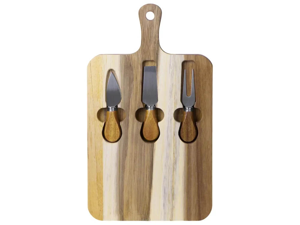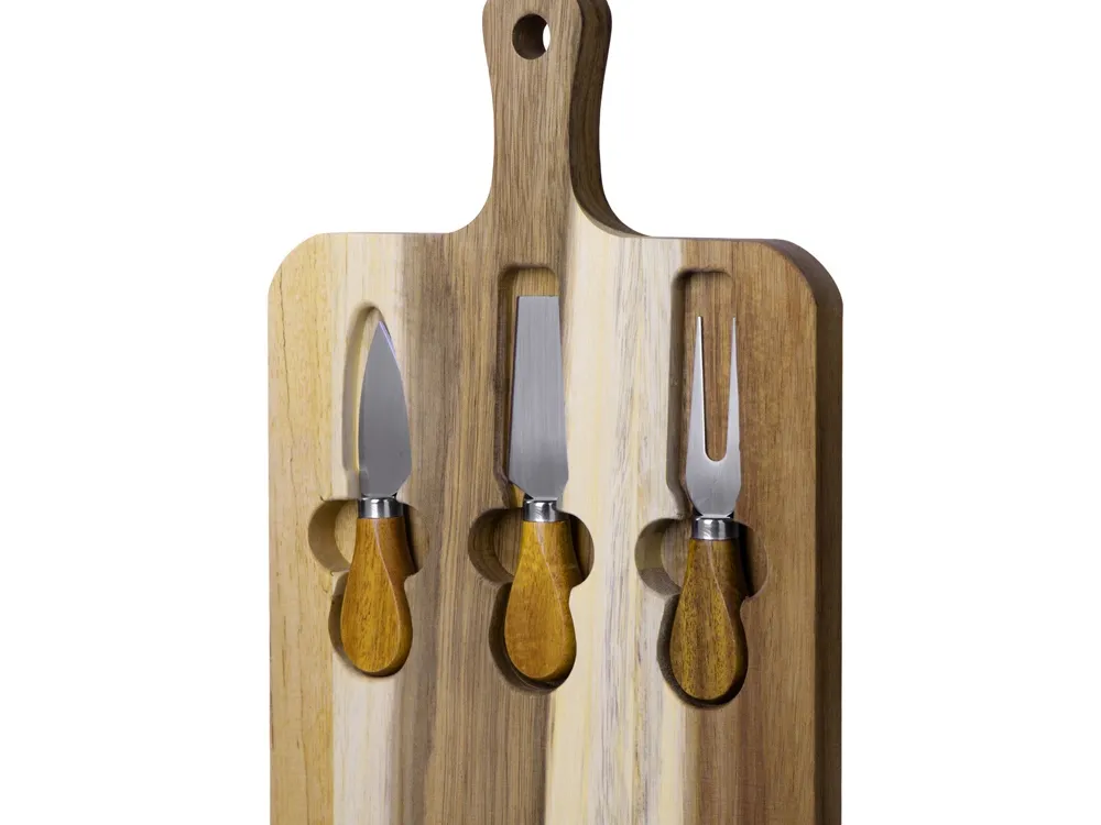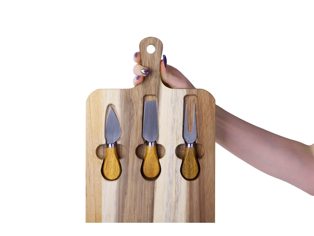Набор для сыра и закусок "Parmesan", выполненный из высококачественной акации станет отличным подарком для тех, кто любит наслаждаться закусками за бокалом вкусного вина. Набор состоит из доски, двух ножей и вилки для сыра. На доске есть ручка для удобства переноски.