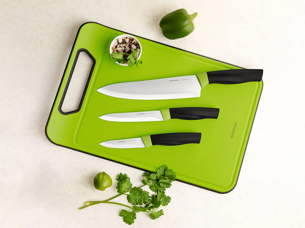 Набор из 3 ножей с пластиковой разделочной доской, NADOBA, серия OLIVIA