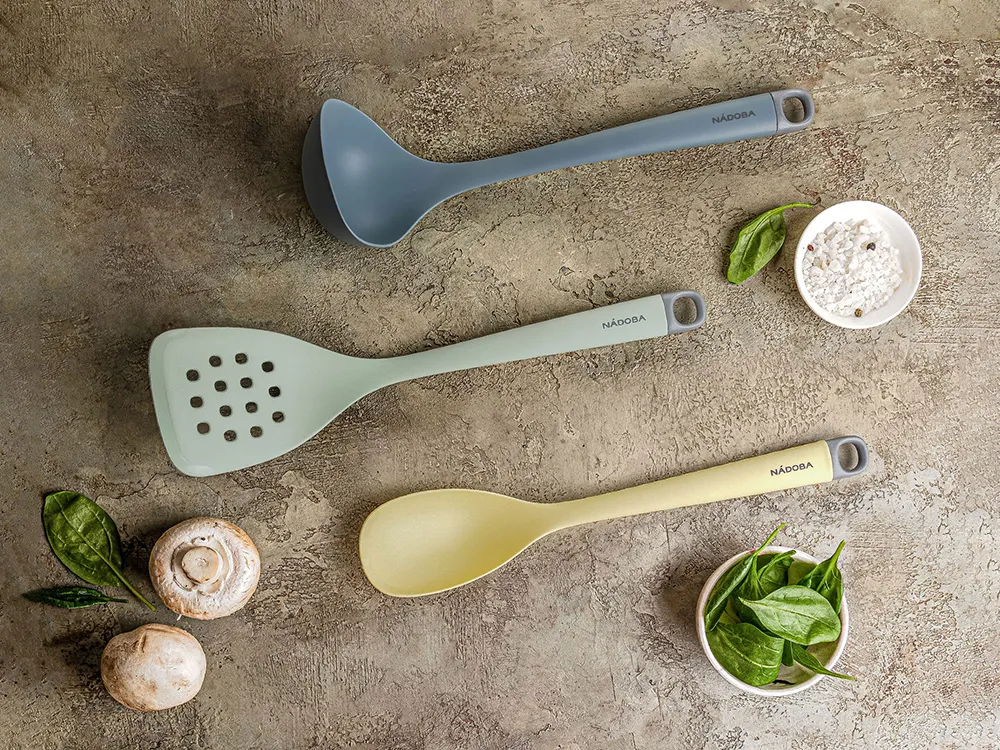 Высококачественный пищевой силикон. Нейлоновый жаропрочный сердечник. Эргономичная силиконовая ручка. Широкий диапазон рабочих температур. Петля для подвешивания.