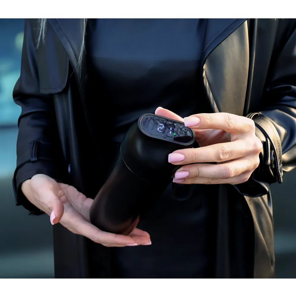 Герметичная вакуумная термобутылка Glory, изготовленная из нержавеющей стали,- идеальное решение для хранения напитков, которые можно взять с собой в дорогу. Эта бутылка разработана с учетом функциональности и стиля и оснащена двухслойной вакуумной изоляцией из нержавеющей стали, позволяющей сохранять ваши напитки горячими или холодными в течение нескольких часов подряд. Внутренний слой изготовлен из нержавеющей стали 304, известной своей долговечностью и устойчивостью к коррозии, а внешний слой термобутылки изготовлен из нержавеющей стали 201, что обеспечивает привлекательный внешний вид. Крышка термобутылки оснащена LED-дисплеем, который показывает температуру напитка в градусах Цельсия (℃). А благодаря удобной силиконовой ручке эту бутылку легко переносить и держать, даже когда ваш напиток очень горячий. Оставайтесь стильными с термосом из нержавеющей стали. Независимо от того, находитесь ли вы на работе, в походе или в пути, эта бутылка станет идеальным компаньоном для всех ваших потребностей в напитках. Бутылку для питья можно заказать в элегантном черном матовом порошковом исполнении. Доступна объёмом 600 мл. Стильно разместите свой логотип на этой модной бутылке для напитков премиум-качества. Двойная стенка с медно-вакуумной изоляцией Микропорошковое покрытие 100% герметичность