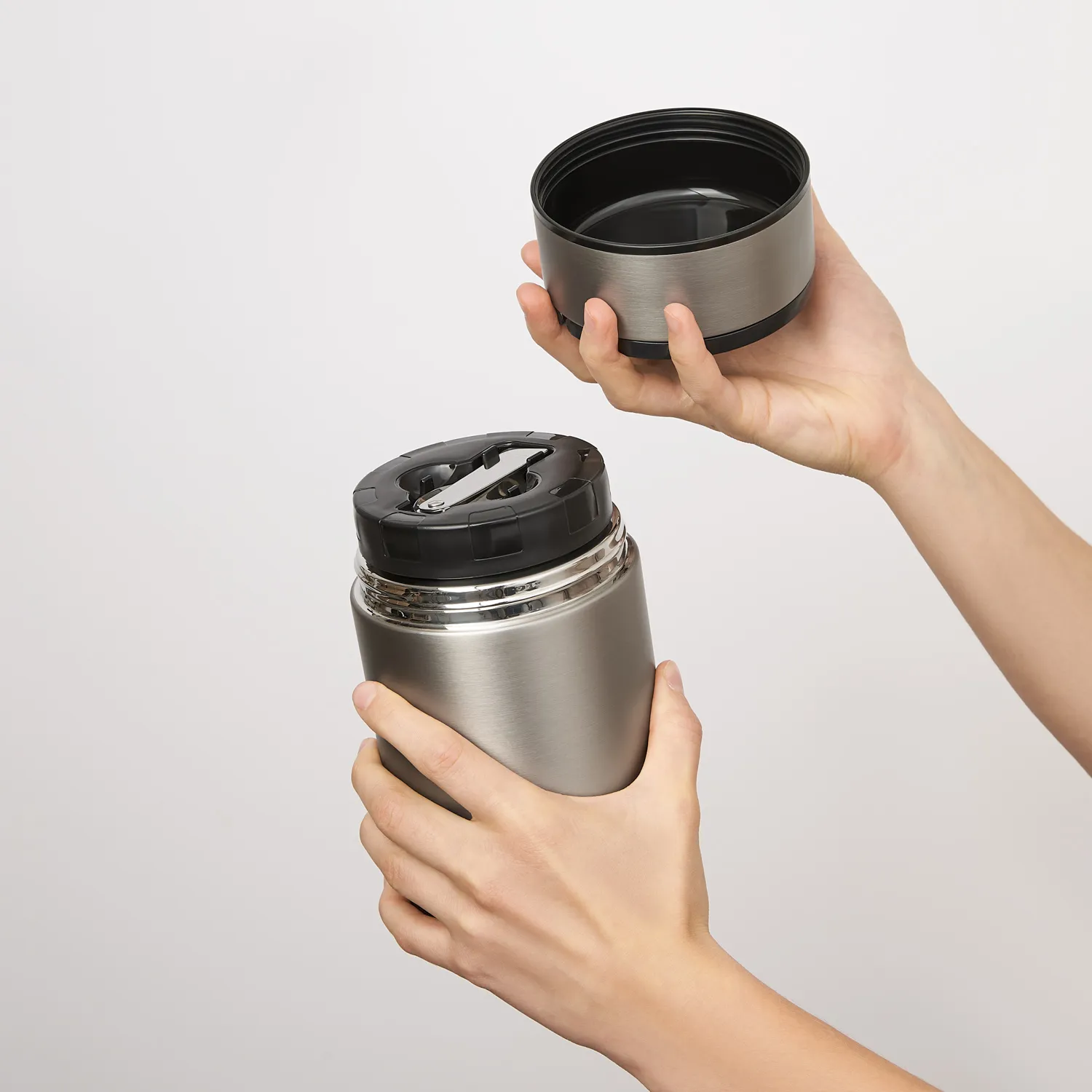 Внешняя крышка-миска – сталь 304 марки снаружи, BPA free - пластик внутри;
