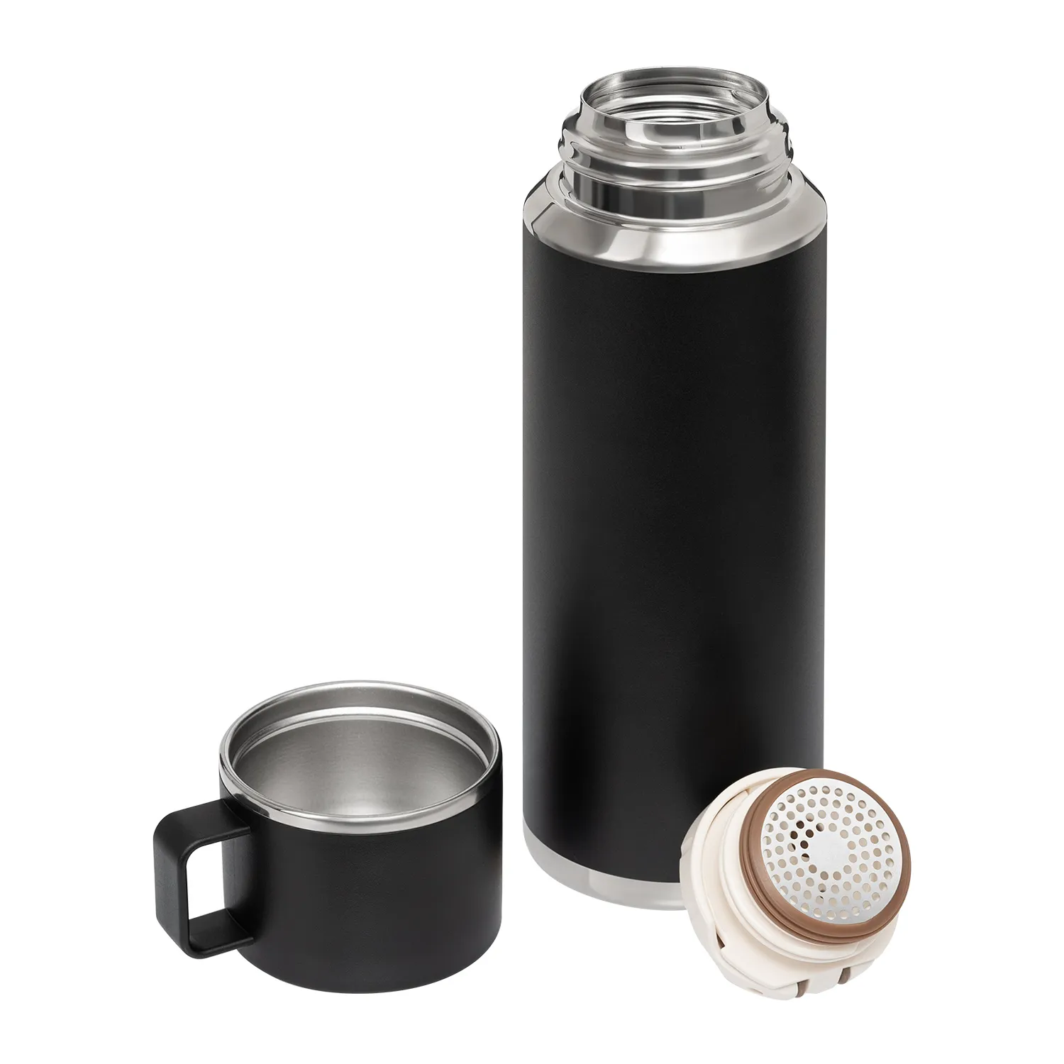 Удобное пользование: откидной клапан с силиконовым уплотнителем открывается нажатием кнопки, а увеличенное горлышко делает питье особенно удобным. Функциональная конструкция предусматривает наличие встроенного ситечко-фильтра, которое предотвращает попадание чаинок, а также крышки-чашки, заменяющую кружку в дороге, и антискользящей вставки на дне.