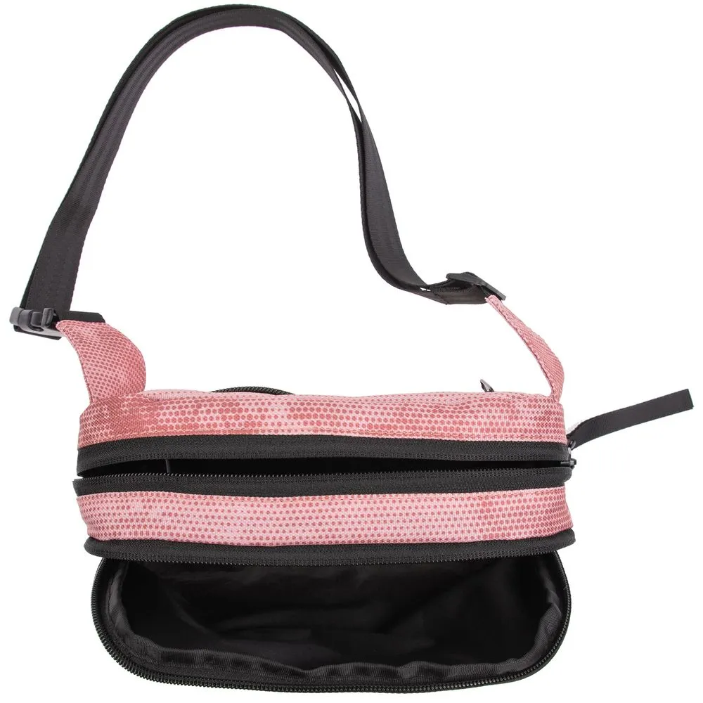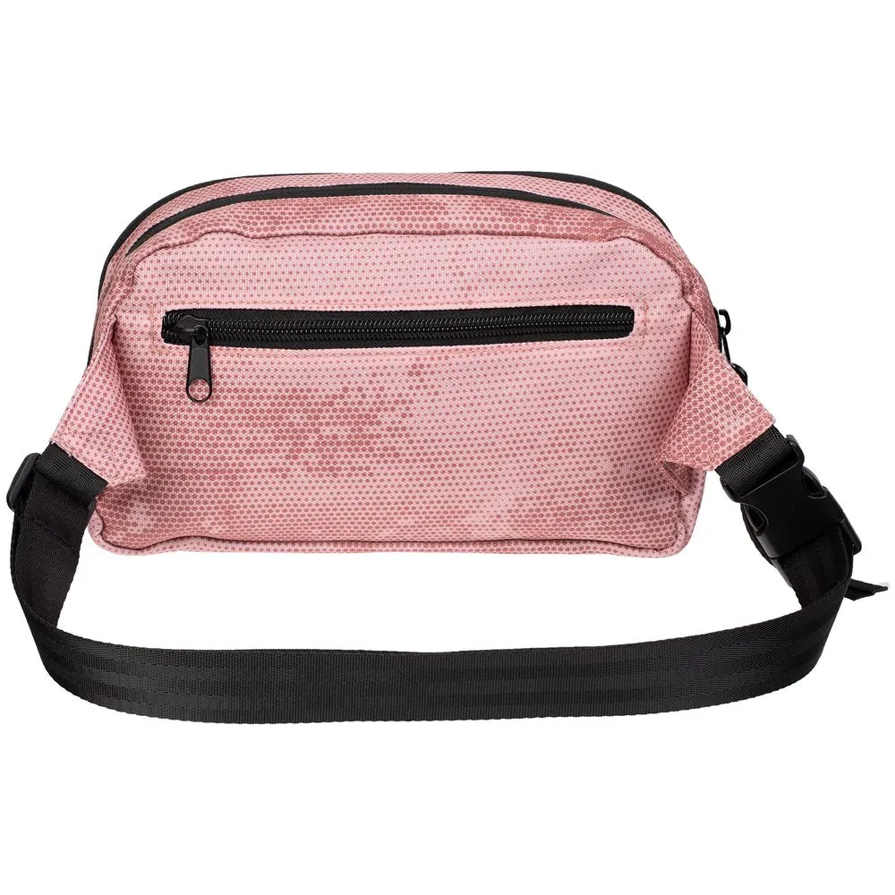 Розовый мрамор долговечен, податлив в обработке и хорошо сочетается практически с любыми материалами и цветами в интерьере. То же самое можно сказать и про поясную сумку — прочная, вместительная и прекрасно дополняющая образ. Аксессуар, который можно приравнять к украшению.