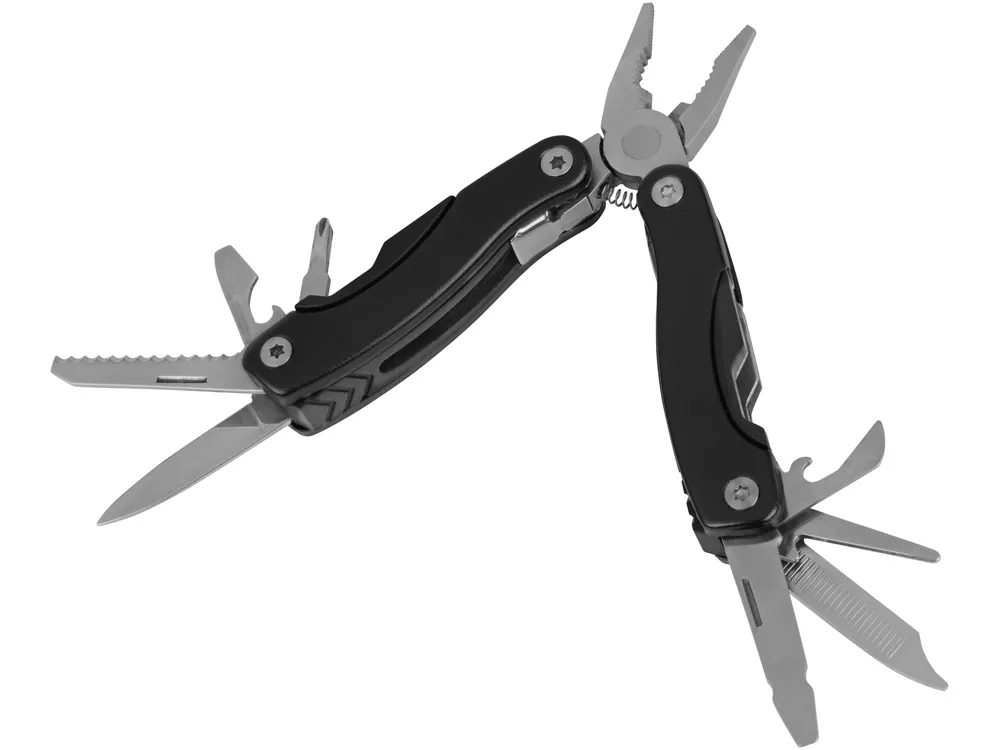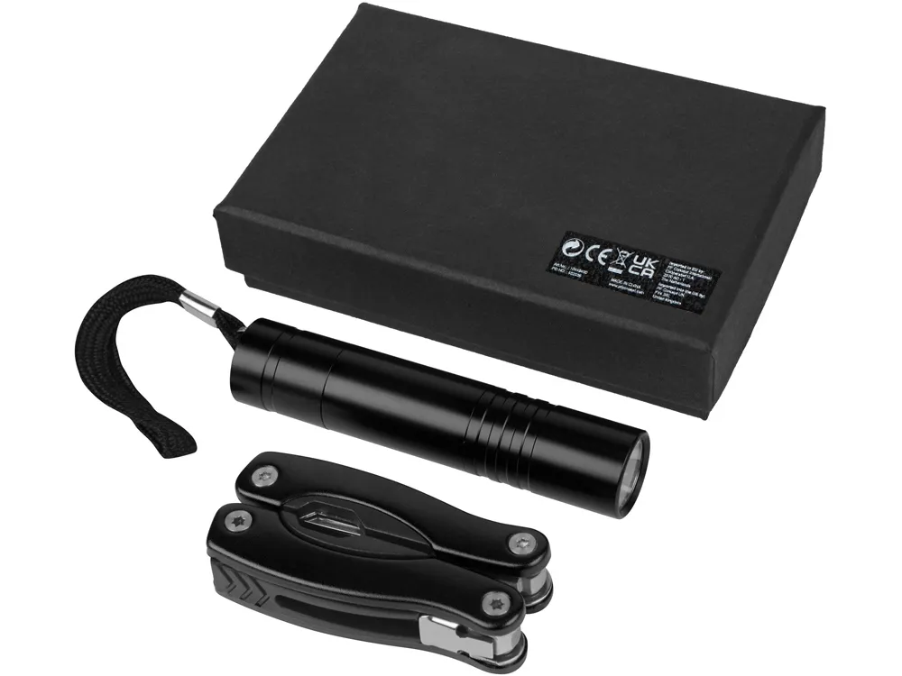 Подарочный набор Scout с многофункциональным ножом и фонариком. 11-тифункциональный инструмент с диодным фонариком упакован в черную картонную коробку. Батарейки в комплекте. Алюминий.