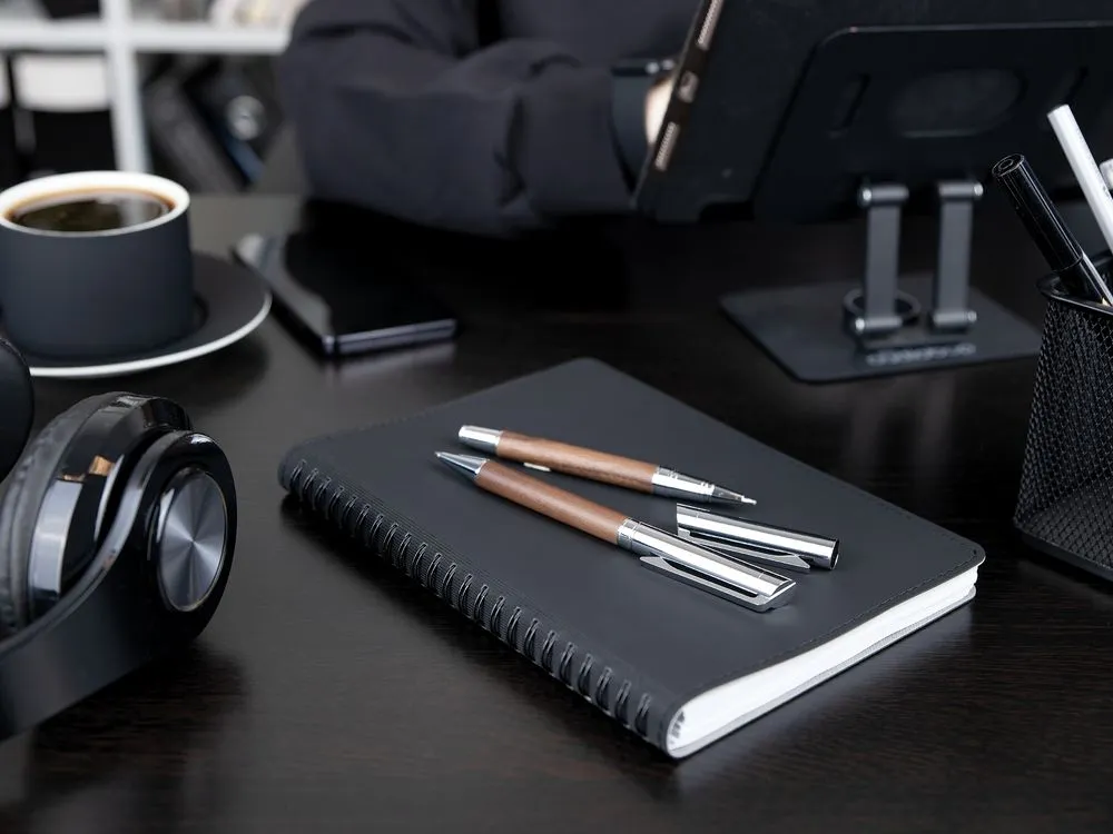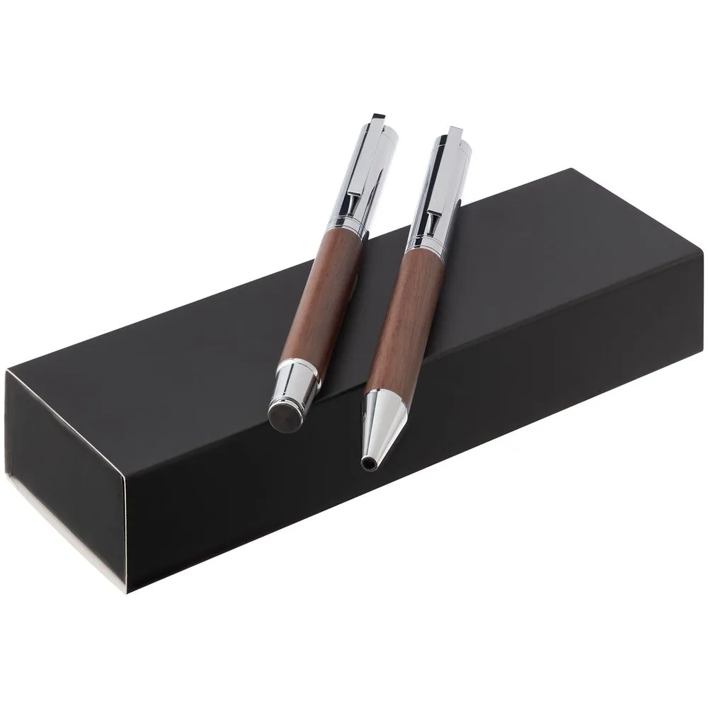 Набор из ручки и роллера Waldo — выбор тех, кто ценит во всем качество и уникальность. Благородный глубокий оттенок древесины ореха, гармоничное сочетание эстетики и функционала делают набор Waldo эффектным деловым подарком.