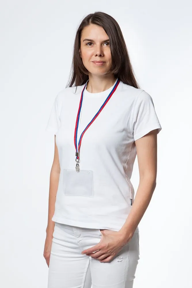 Бейдж крепится к ленте с помощью металлической клипсы.