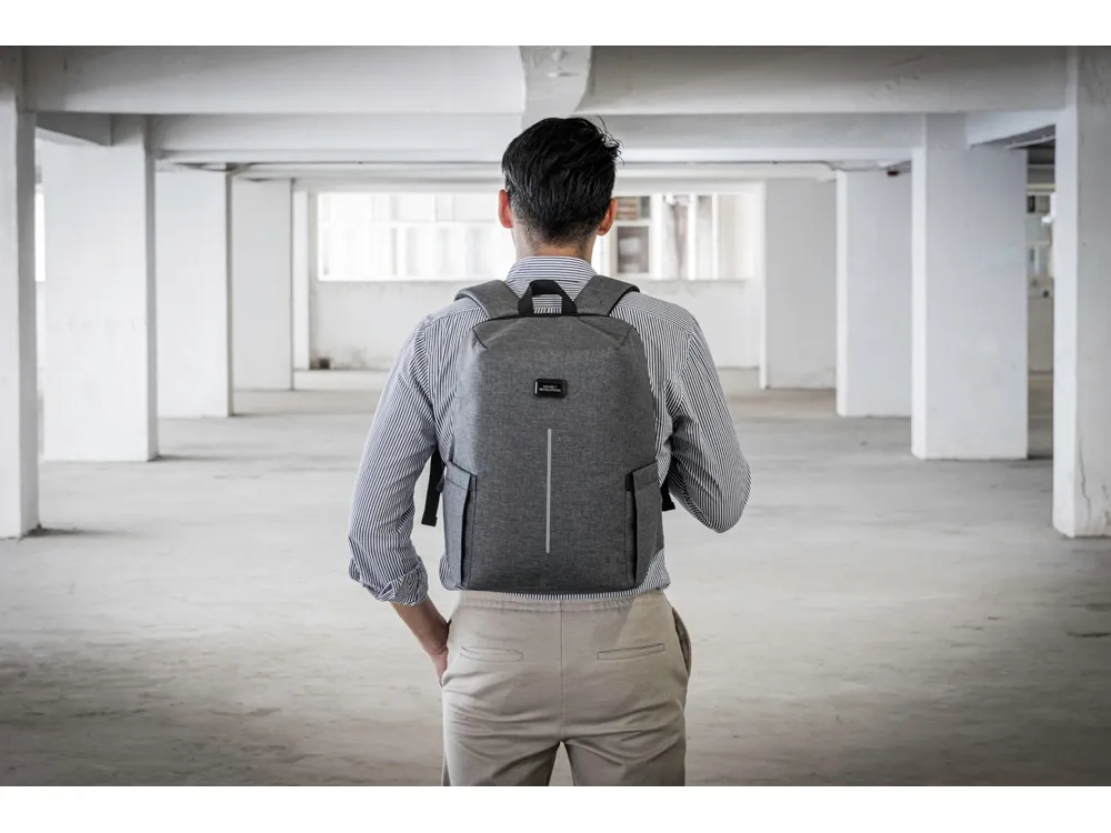 Надежный противокражный рюкзак из водостойкого материала, устойчивого к загрязнению. С уплотненным отделением для ноутбука 16'' для большей сохранности вашего гаджета. Оснащен молнией, смещённой к спине, что затрудняет несанкционированный доступ к содержимому рюкзака. - удобный органайзер внутри, - 2 расширяющихся боковых кармана на эластичной ленте, - светоотражающая полоса спереди для большей защиты в темное время суток, - лямки регулируются по длине, - сетчатая дышащая спинка, - ремень для крепления на ручку чемодана.