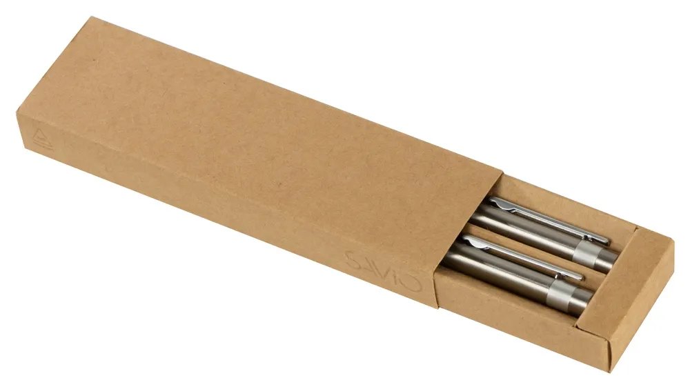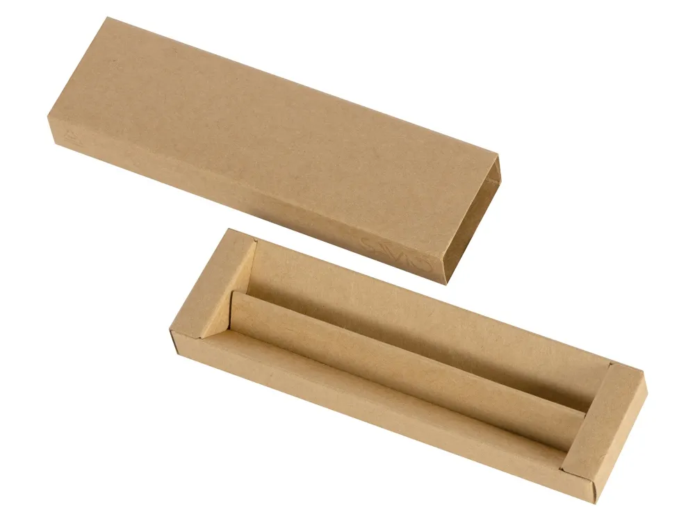 Футляр рассчитан на две ручки. Изготовлен из переработанного картона. Натуральный крафтовый цвет – прекрасный выбор для подарочной упаковки с персонализацией. Логотип самого футляра и знак переработки нанесены на боковой стороне прозрачным лаком, что делает их практически незаметными по сравнению с вашим логотипом. · Натуральный крафтовый цвет · Забота об экологии