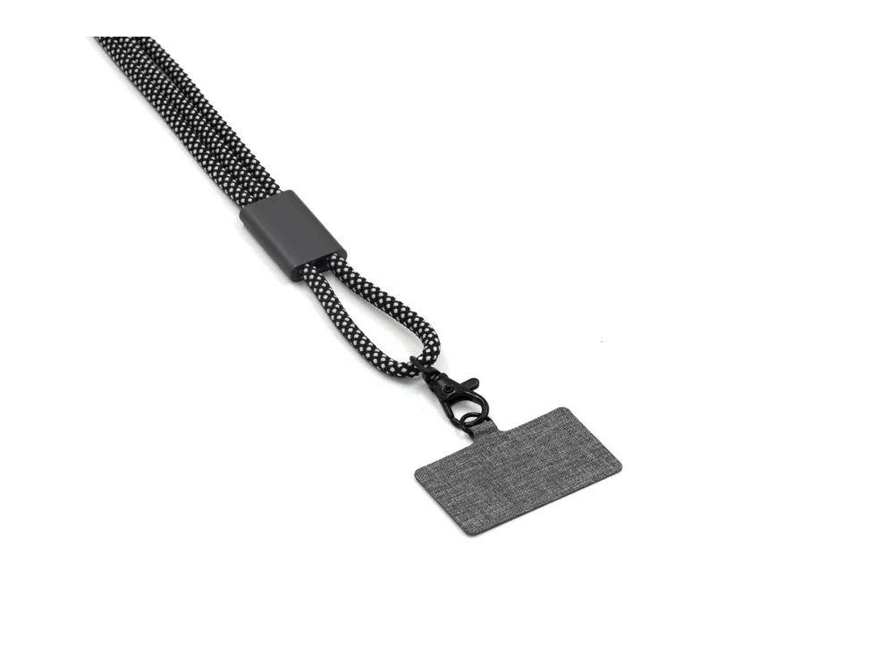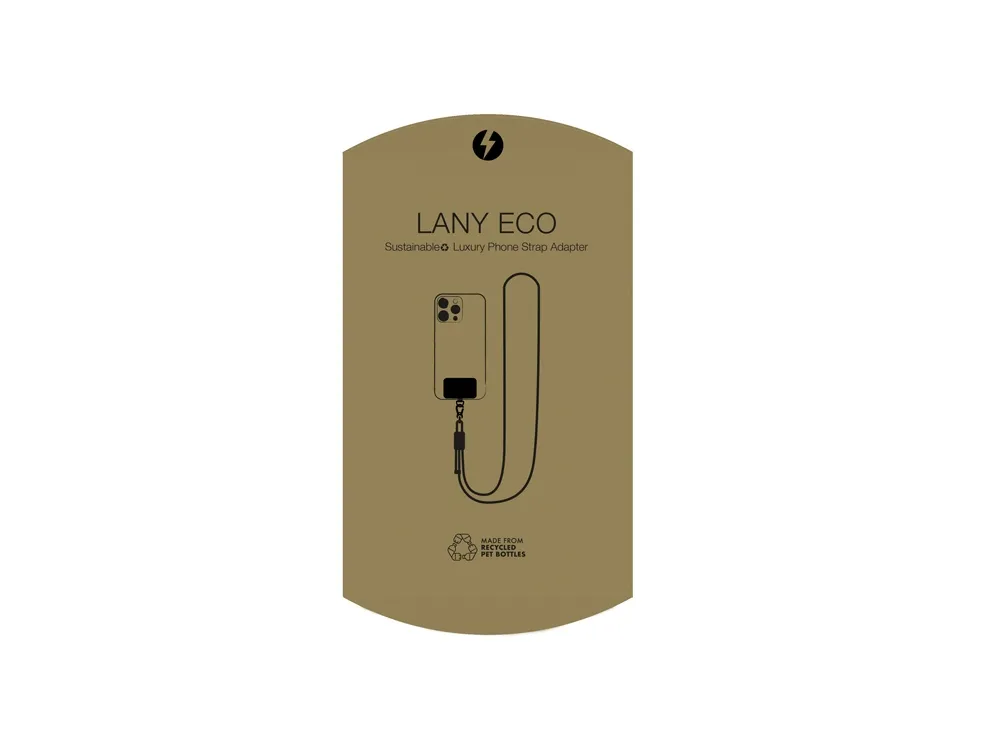 «Lany» - это корпоративный подарок для каждого, у кого есть телефон! Изготовленный из переработанных ПЭТ-бутылок, чехол «Lany» превращает ваш собственный чехол для телефона в чехол через плечо и освобождает ваши руки. Адаптер для ремешка для телефона в тонком металлическом корпусе - отличное и надежное решение. Этот умный гаджет всегда должен быть в вашей сумке. Длина ремешка регулируема и составляет до 120 см.