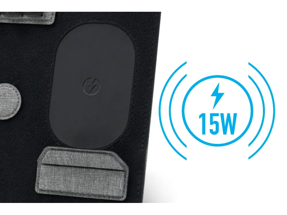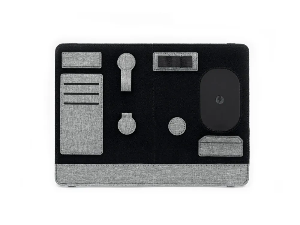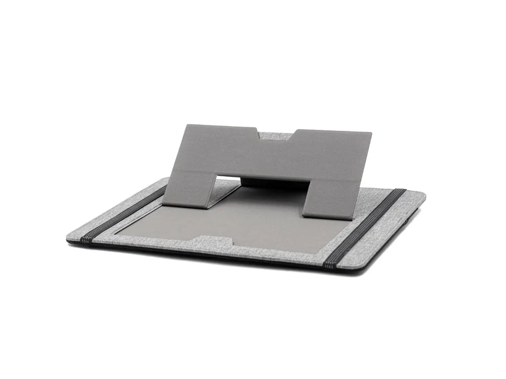 «Clipboard Pro», который одновременно служит подставкой для ноутбука и настольным органайзером, является идеальным корпоративным подарком. В «Clipboard Pro» встроена складная подставка для ноутбука, что позволяет создать эргономичное рабочее пространство в любом месте! Помимо подставки для ноутбука, этот настольный органайзер оснащен подставкой для телефона с быстрой беспроводной зарядкой мощностью 15 Вт (регулируемой), планшетом для обмена, двумя магнитными док-станциями, держателем для ручек, держателем для карт, зажимом для кабеля и подставкой для телефона. Поддерживать порядок на рабочем столе еще никогда не было так просто! Этот универсальный ремень крепится к ноутбуку, как эластичная закладка.